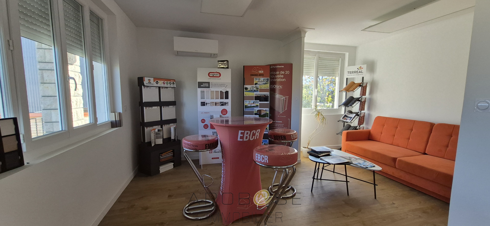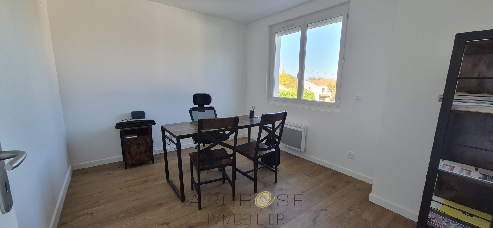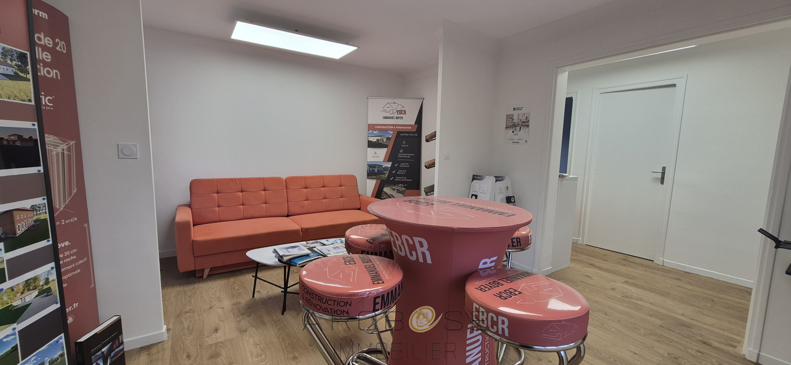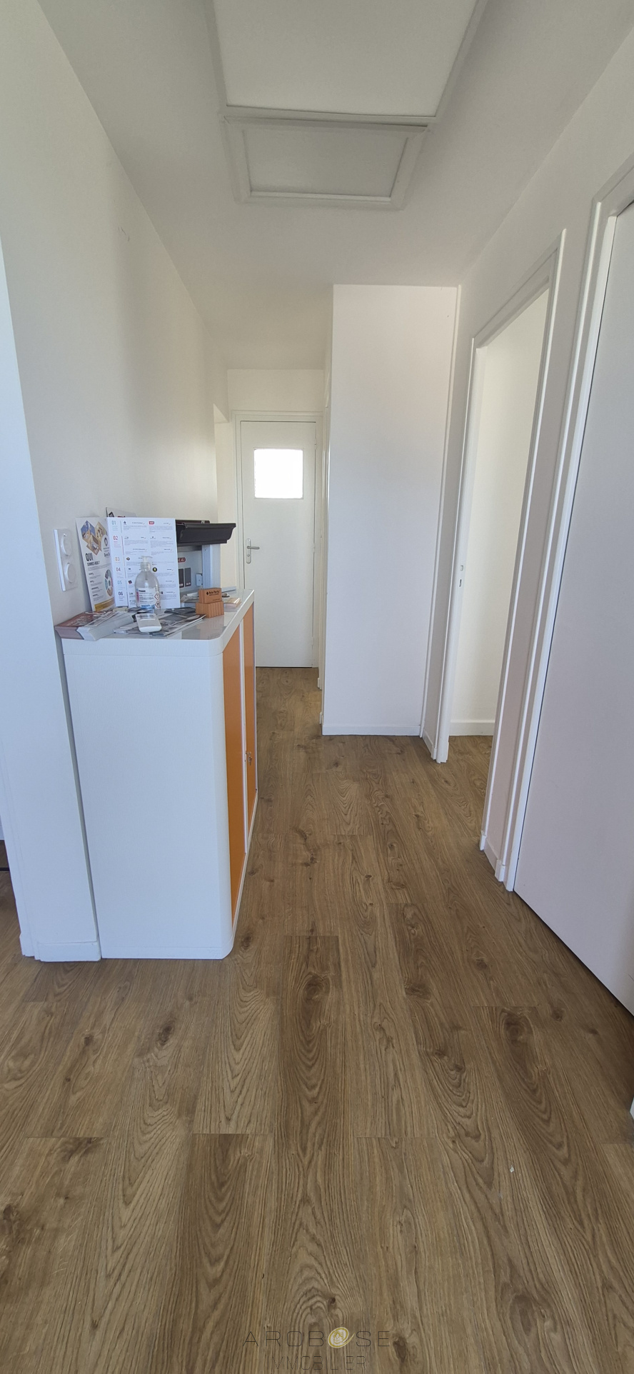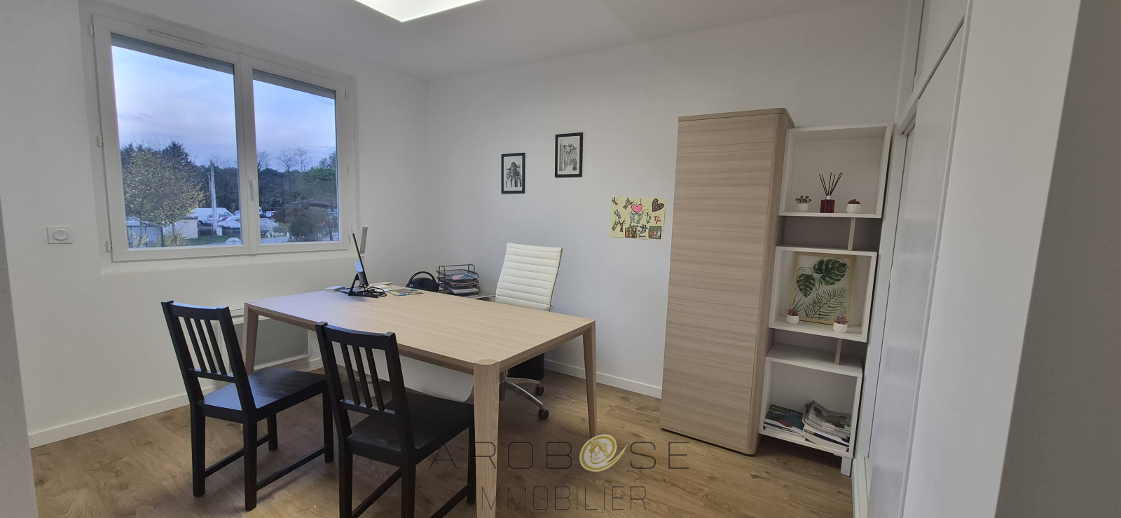 Il se compose d'un entrée avec espace accueil ou bureau ouvert, de deux bureaux, une cuisine équipée, une salle d'eau et un WC.