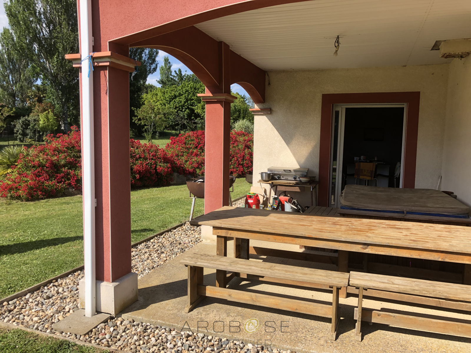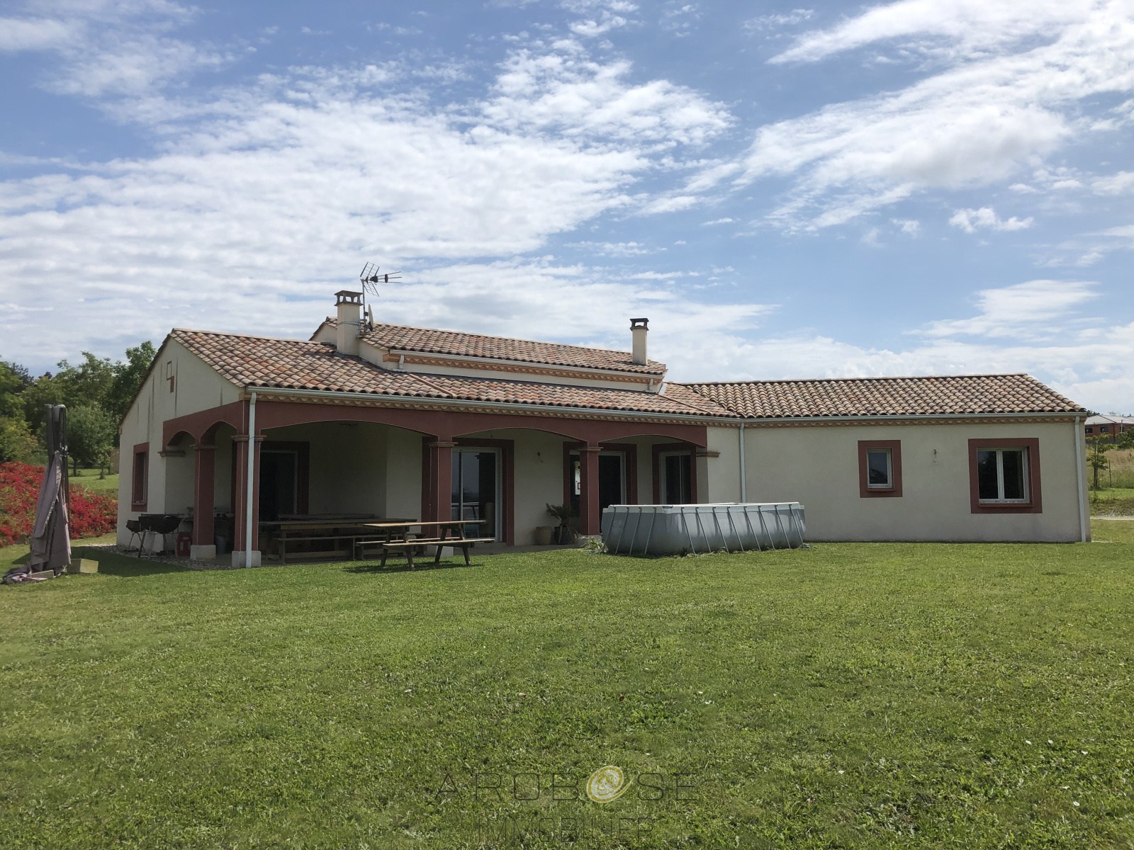 Entre Bordeaux et Toulouse, à un quart d'heure d'un accés autoroute et à quelques minutes du centre de TONNEINS, de sa gare et de toutes commodités. Cette villa récente, de plain pied, tout confort de plus de 150 m² de plain-pied, offre une belle pièce lumineuse salon-séjour-cuisine de 60m² avec un insert désign, un bureau, trois chambres avec placards dont une avec dressing, une grande salle de bains-douche, un wc, une arrière cuisine, un abri voiture et un garage attenant. Son beau jardin clos et arboré sans vis à vis d'une superficie d'environ 1 ha ne pourra que vous séduire.; prestations de qualités!.. Une visite s'impose !!