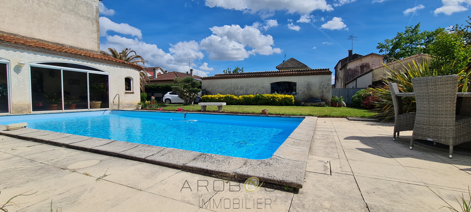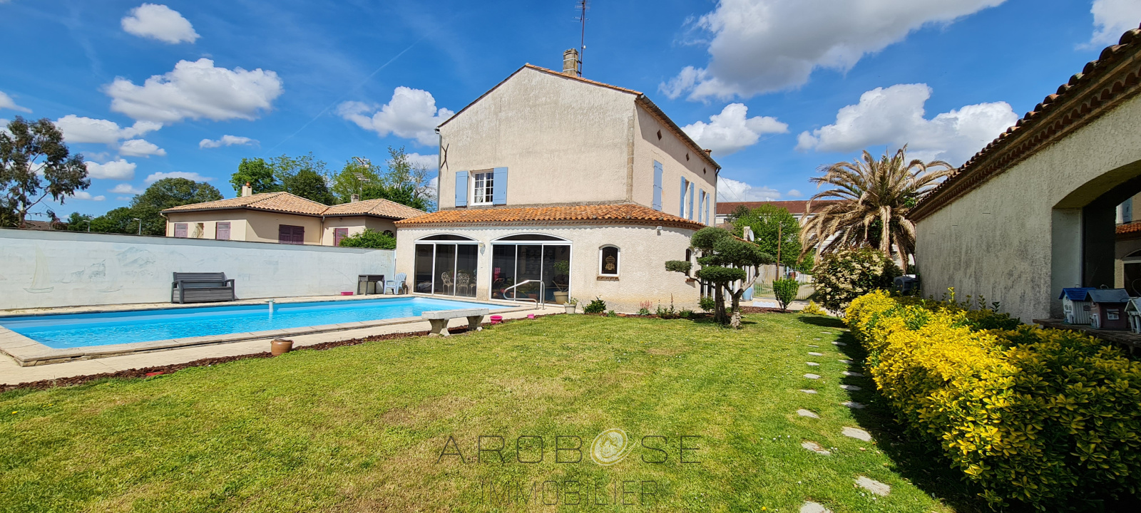 Nichée au cœur de Tonneins, dans le calme d’une impasse, cette élégante maison de caractère construite en 1850 allie charme de l’ancien et confort moderne. Dès l’entrée, le rez-de-chaussée s’ouvre sur un salon convivial, une cuisine entièrement équipée et une chambre de plain-pied. À l’étage, un spacieux palier offre la possibilité d’aménager un bureau et dessert quatre chambres, dont une suite parentale avec salle de bains, ainsi qu’une seconde salle de bains et un dressing. Un grenier comprenant une pièce aménagée et des espaces de rangement vient compléter l'ensemble. À l’extérieur, vous profiterez d’un garage indépendant et d’un joli jardin arboré avec piscine. Une maison pleine de cachet à visiter sans attendre !