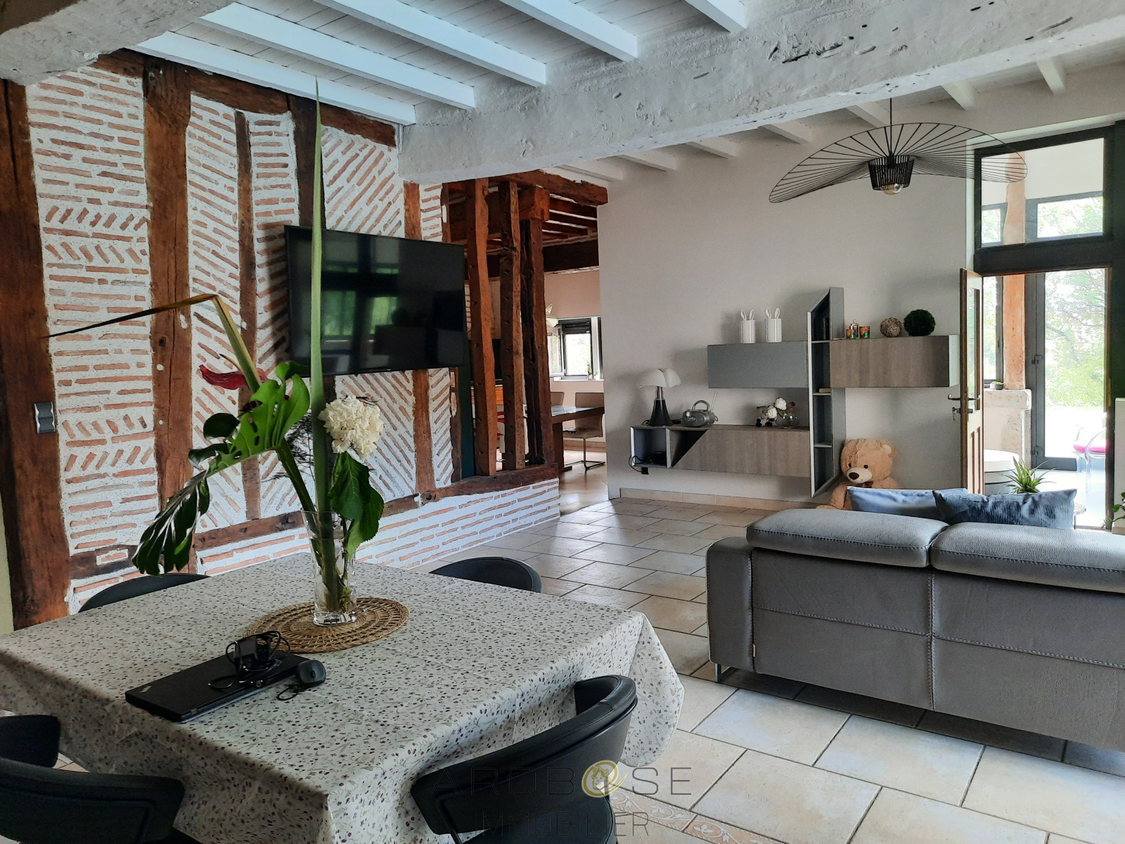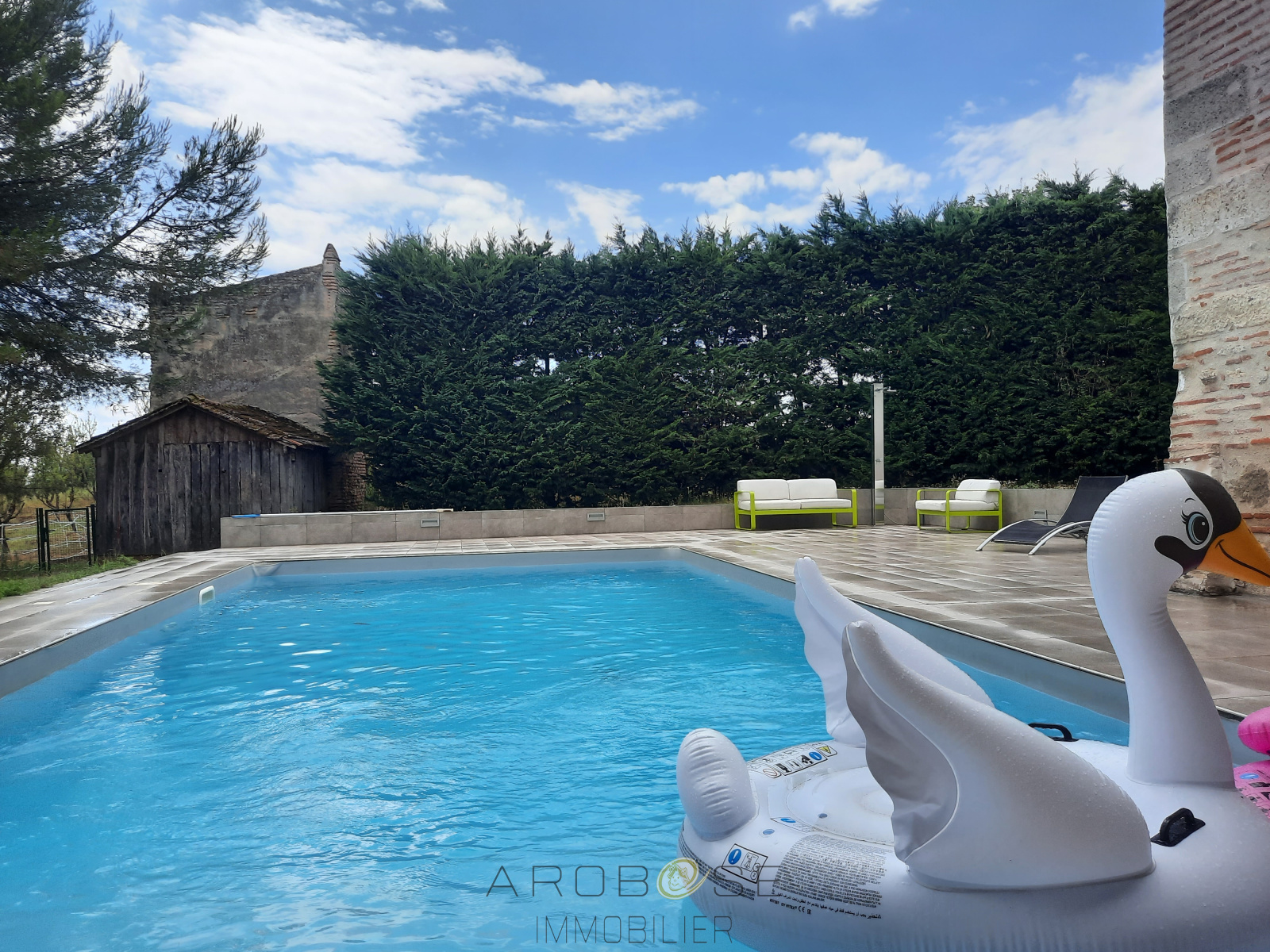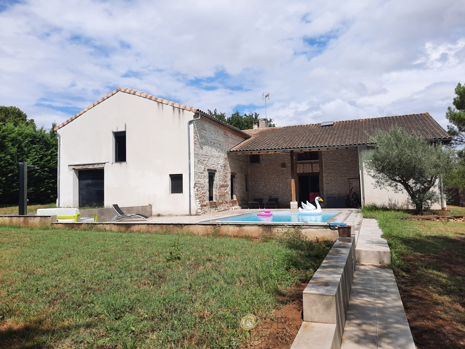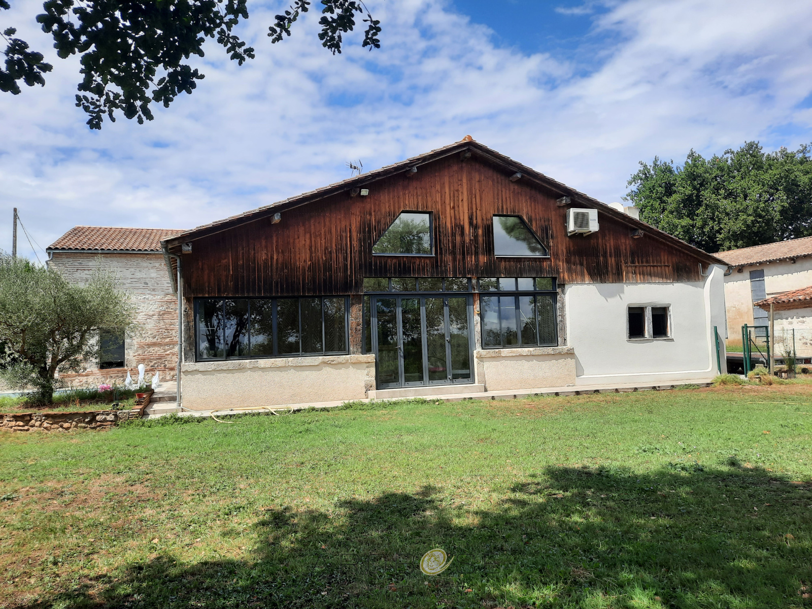 Campagne Clairacaise....Au bout d'un chemin communal, se trouve ce bel ensemble immobilier, véritable havre de paix, composé d'une maison d'habitation en pierres entièrement restaurée de plus de 250m2 habitables, d'un gîte de 42 m2 avec terrasse, d'un garage attenant de 80m2, d'un séchoir de 175 m2, d'un atelier de 50m2, d'un ancien pigeonnier, d'une piscine avec sa plage carrelée et son auvent de 35m2, le tout à l'abri des regards,..... d'un grenier d'environ 140m2 qu'il ne reste plus qu'à finir d'aménager... le tout sur un terrain de presque 2 Ha, avec ponton flottant sur le Lot.... Vite, une visite s'impose ! A moins d' 1h30 de Bordeaux....