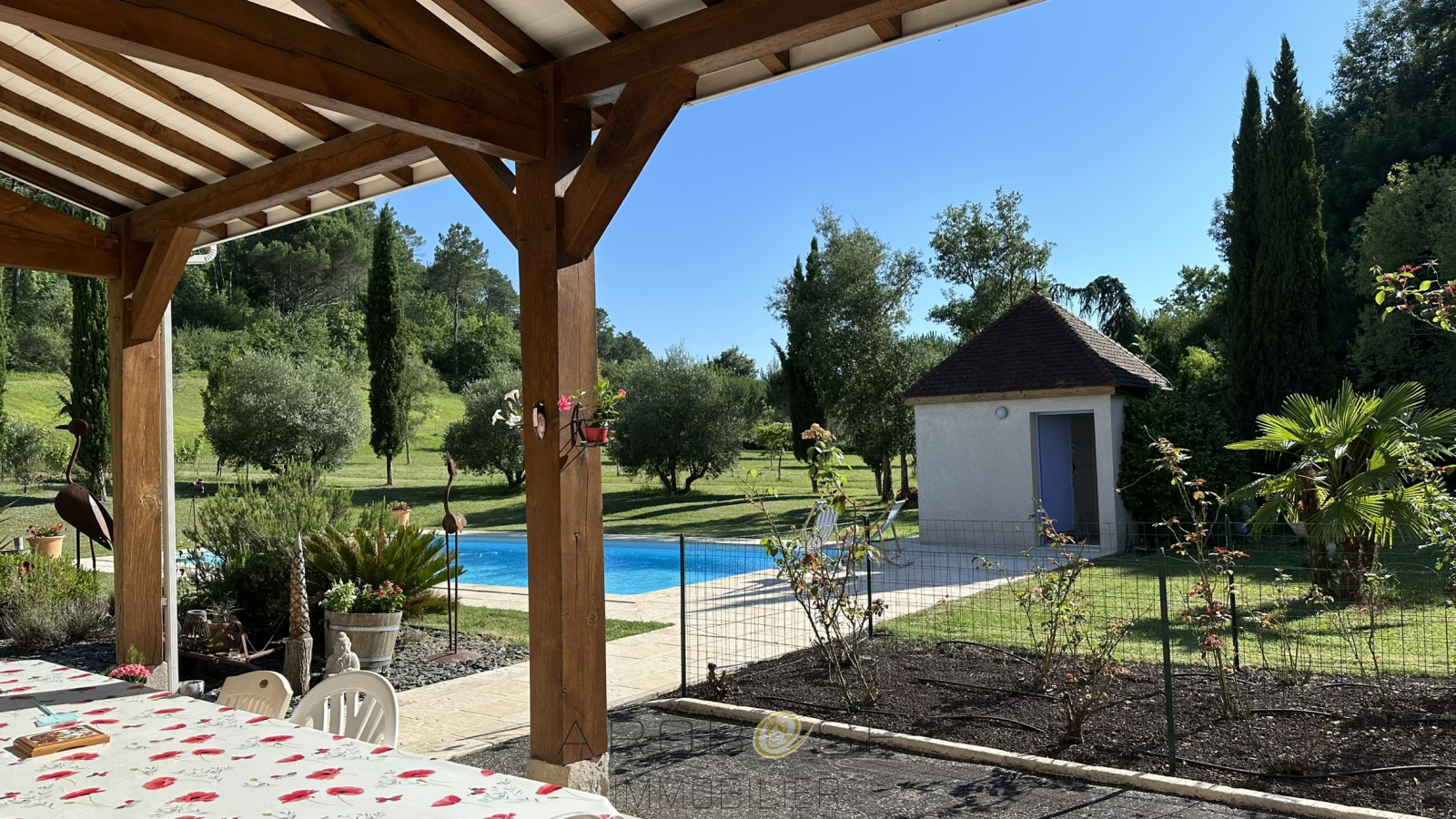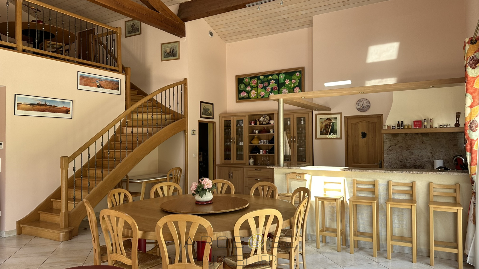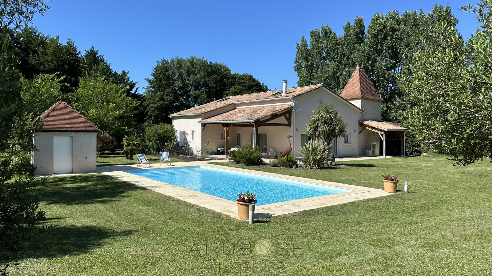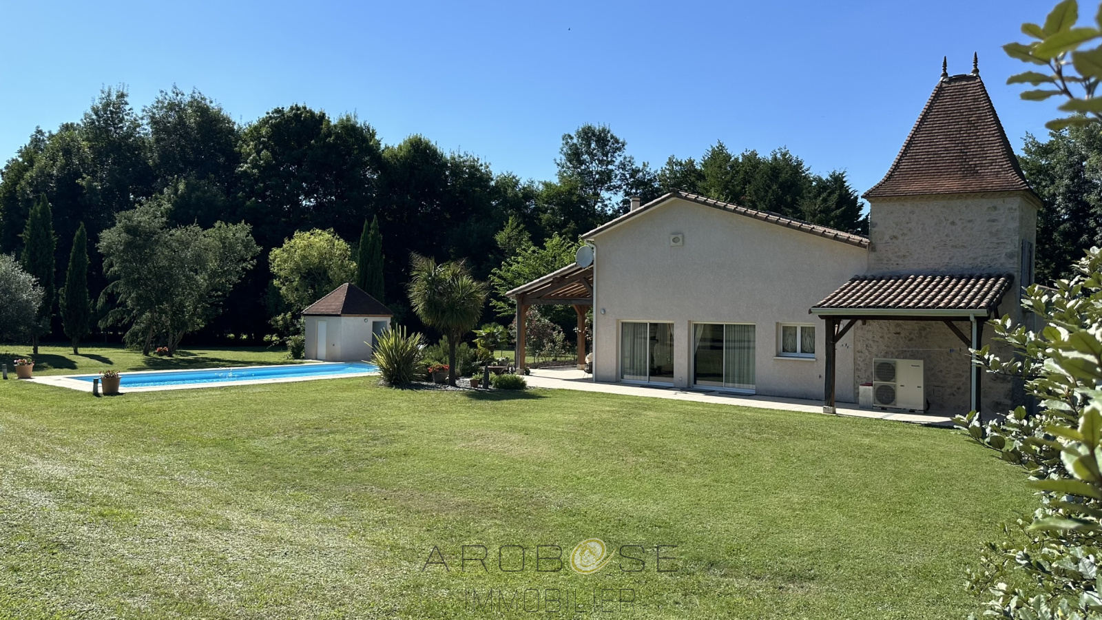 Du standing, une construction de belle facture, un environnement enchanteur, une piscine et sa plage, des volumes.....en résumé, avec ses 220m2, ses 4.4 hectares au total, cette propriété ne pourra que vous séduire ! Composée d'une pièce à vivre de 80m2, d'une suite parentale de 33 m2, d'une entrée, d'un grand garage, d'un cellier, d'un WC, en rez-de-chaussée, d'un pigeonnier avec cave et atelier au dessus,. L'étage dispose d'une mezzanine à usage de bureau d'environ 30m2, de 3 chambres dont une mansardée, d'une salle d'eau avec WC. Ses terrasses, sa piscine 6x12, avec son local sanitaire (douche,WC), son jardin arboré....d'environ 2.8 ha,traversé par un ruisseau sans oublier sa parcelle d'environ 1.6 ha non attenante.... Elle possède une pompe à chaleur, le double-vitrage, une aire de stationnement en enrobé, un portail automatique en fer-forgé..cerise sur le gateau cette maison est vendue meublée .. Venez la visiter et vous serez conquis !