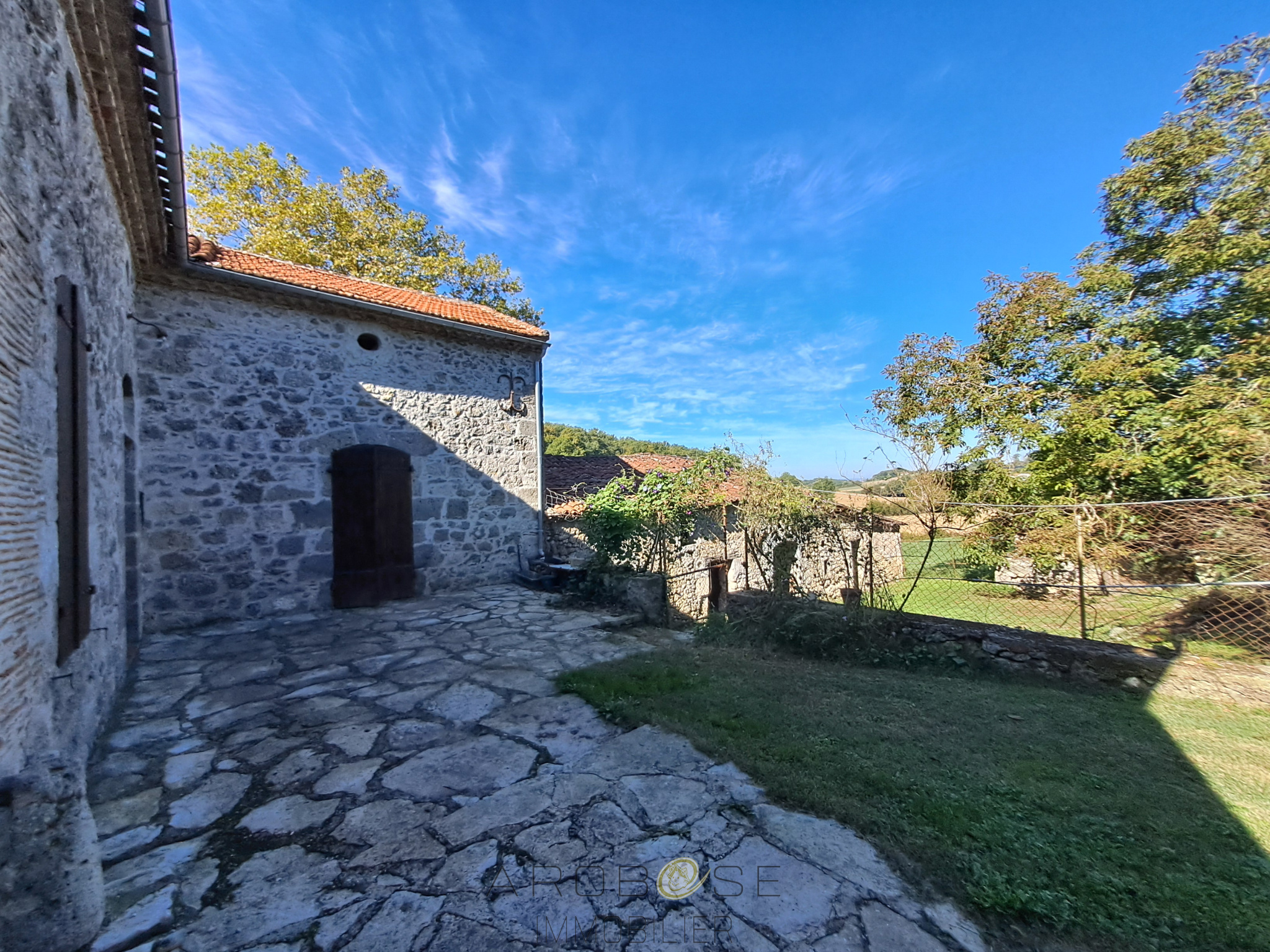 EXCLUSIVITE :Au cœur du Lot-et-Garonne, à environ 15 minutes de l'entrée de l’autoroute A62 de DAMAZAN, axe Bordeaux-Toulouse, entre Agen et Tonneins, venez découvrir cette belle maison de campagne en pierre , offrant de beaux volumes, avec ses dépendances (cave, écurie ,porcherie) et sa maison des métayers, composée d'une ancienne cuisine de sa cheminée, son étable, son atelier et un grand garage l'ensemble offrant un potentiel supplémentaire, ses terres, son bois et son étang. Située sur les hauteurs de Port Sainte Marie, à 5 min du centre-ville et de sa gare et à 10 min d’Aiguillon, c’est un réel coup de cœur ! Sur un terrain arboré d'environ 3 hectares , elle dispose de 5 pièces principales pour une surface totale d'environ 155 M².Habitable de plain pied elle se compose d’un hall d’entrée, d’un salon avec sa cheminée et clim réversible, d’une salle à manger avec sa cheminée, d’une cuisine séparée, de 3 chambres et 2 salles d’eau avec WC. Cette maison de caractère, au calme, saura vous séduire. Aprés quelques travaux vous vivrez dans un lieu unique . Vous avez des animaux, envie d'espace, contactez-nous !