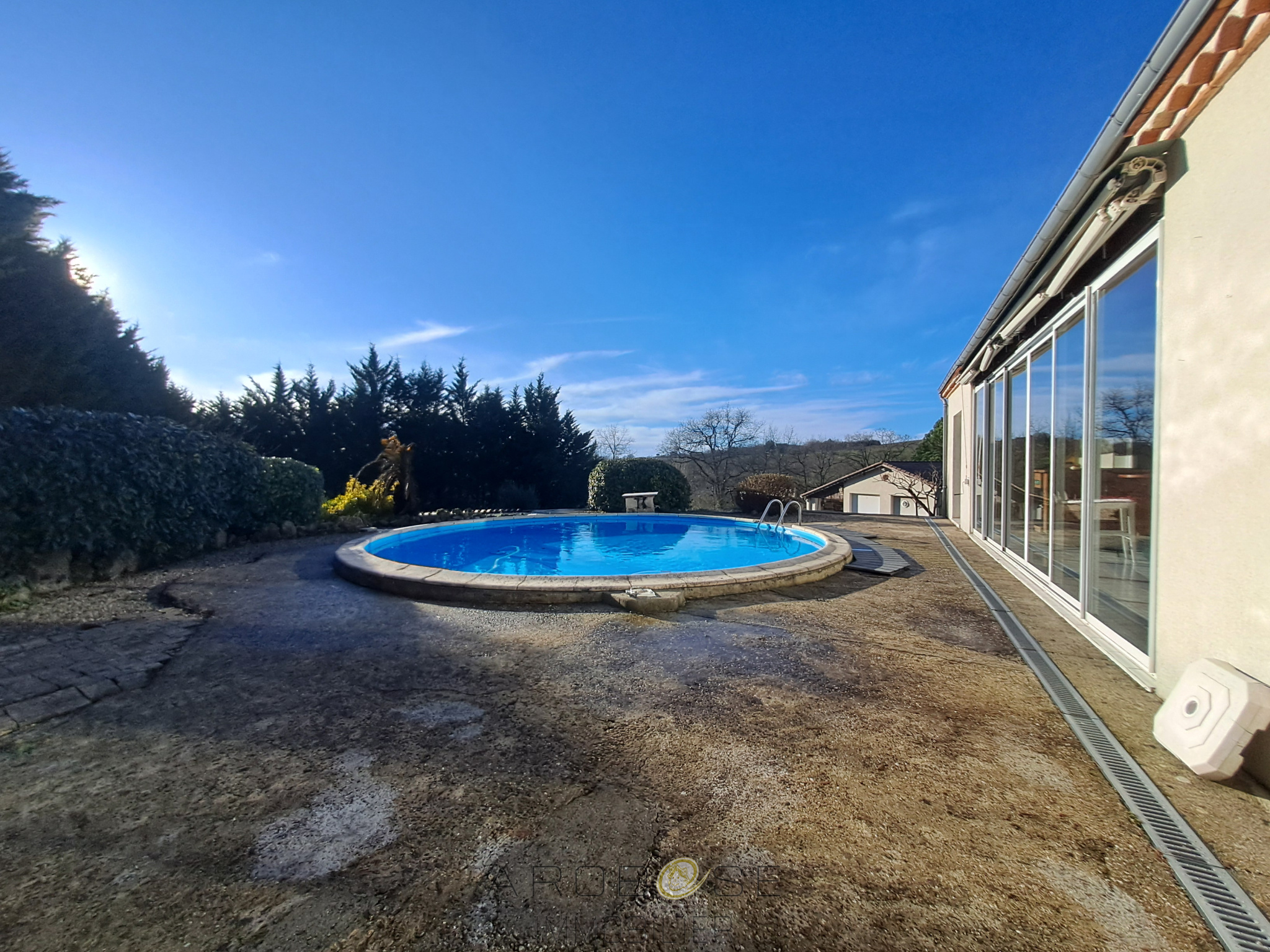 Unique, Au cœur du Lot-Et-Garonne, à environ 10 minutes de l'entrée autoroute A62 de DAMAZAN, axe Bordeaux-Toulouse, entre Agen et Tonneins, venez découvrir cette charmante maison de plain-pied. Sur un terrain arboré et clos de plus de 2700 M², elle se compose de 6 pièces principales avec un hall d’entrée, un séjour lumineux d’une surface d’environ 35 M² avec sa cuisine ouverte et son poêle à bois, d’une véranda, d’une chambre parentale avec sa salle d’eau et de 2 chambres, d’une deuxième salle d’eau, d’une pièce à usage de bureau, d’un cellier/buanderie, d’un débarras, d’un WC indépendant et d’un garage. A l’extérieur, la maison offre 1 terrasse avec piscine, 2 garages et un atelier non attenants à la maison et une dépendance. Quelques petits atouts supplémentaires : double vitrage, climatisation réversible dans la véranda, portail électrique et 2 récupérateurs des eaux de pluies. Cette très belle maison, très bien entretenue, au calme et avec une vue dominante, saura vous séduire. Alors faites vite, elle ne vous attendra pas très longtemps ! Contact : Sylvie Boussenac, agissant en qualité d’agent commercial, immatriculé au RSAC d’AGEN sous le numéro 979410834, Tél. 06 20 96 98 41.