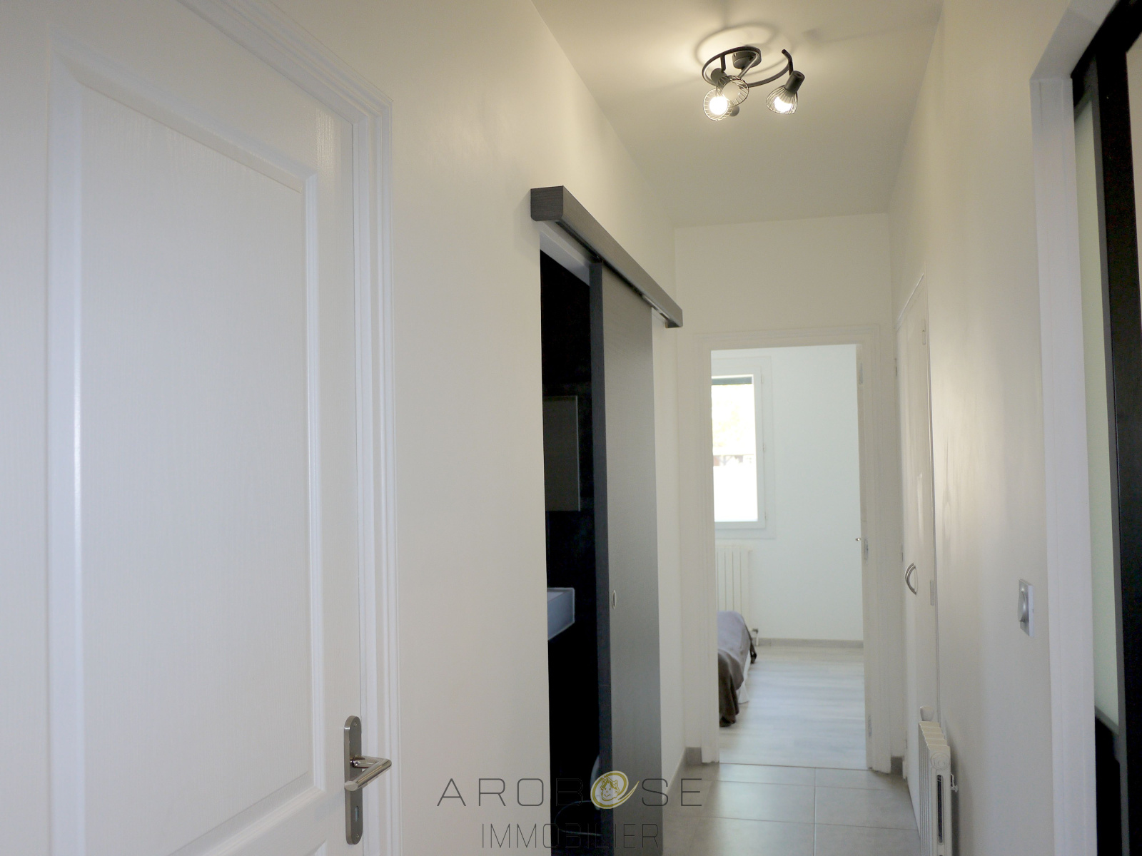 EXCLUSIVITE : MARMANDE, dans un quartier résidentiel et au coeur d'un terrain d'environ 1000 m2 clos avec puits, venez découvrir cette maison de plain pied entièrement rénovée que ce soit au niveau du confort (isolation, double vitrage, poele à bois ) que de la décoration aux couleurs actuelles !!! La partie jour se décline par une belle pièce de vie d'environ 50 m2 comportant un séjour salon et une cuisine ouverte équipée ainsi qu'un cellier. Pour l'espace nuit : 3 chambres, une salle d'eau avec douche à l'italienne, un WC. Un demi sous-sol à usage de garage et de chaufferie est également à votre disposition. Vous vous sentirez chez vous très facilement !!.. RARE sur secteur, à visiter rapidement!