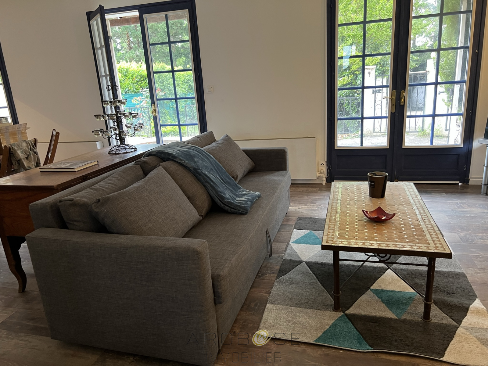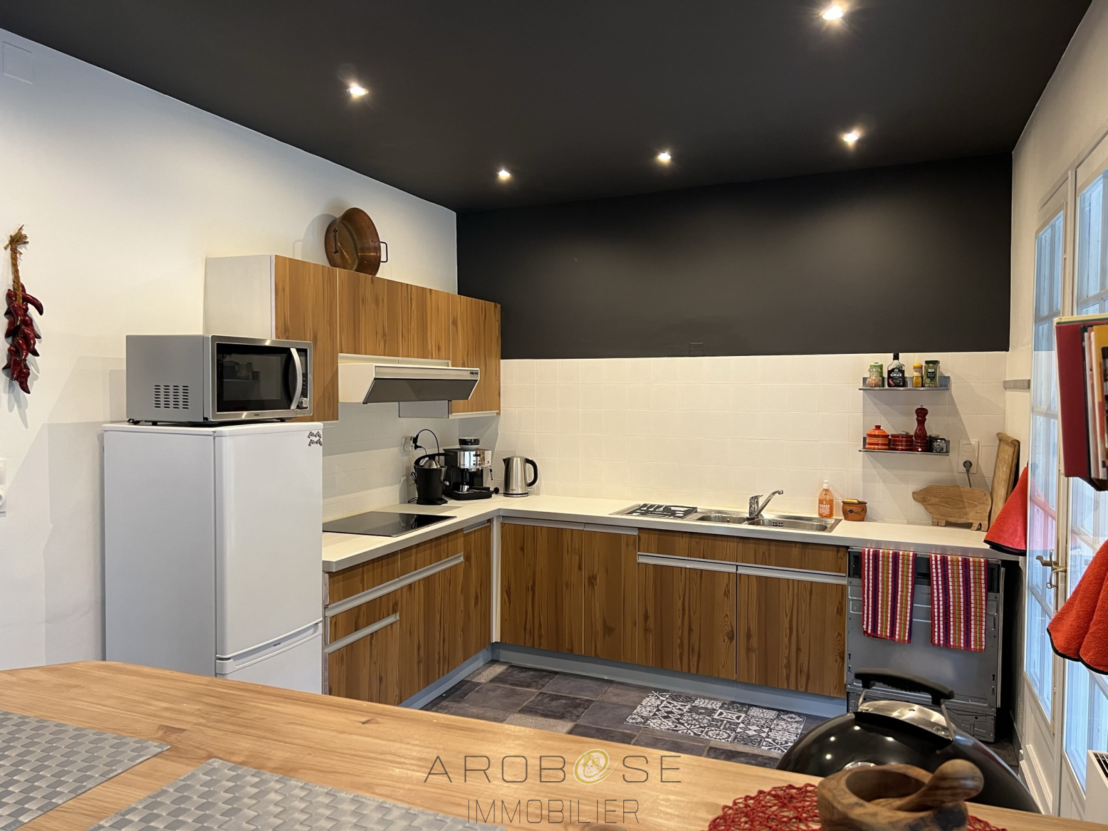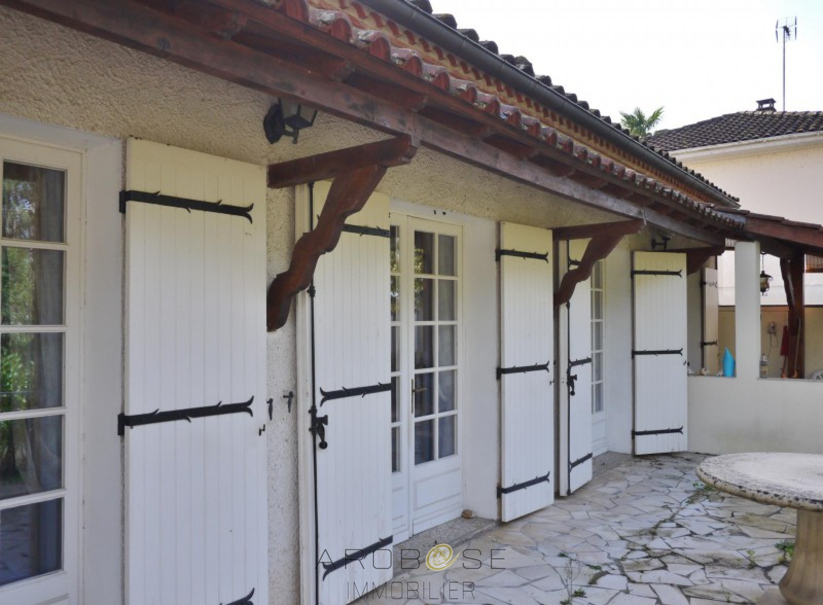Exclusivité ; Aiguillon en centre ville : cette maison de plain pied en parfait état construite sur un terrain de 400 m2, vous propose une pièce de vie avec cheminée et cuisine aménagée et équipée de 48 m2, deux chambres, une salle de bains et un WC. Le garage est attenant. La terrasse semi-couverte ouvre sur le jardin clos .Pompe à chaleur, chauffeau thermodynamique,tout à l'égout, grenier aménageable et isolé !
