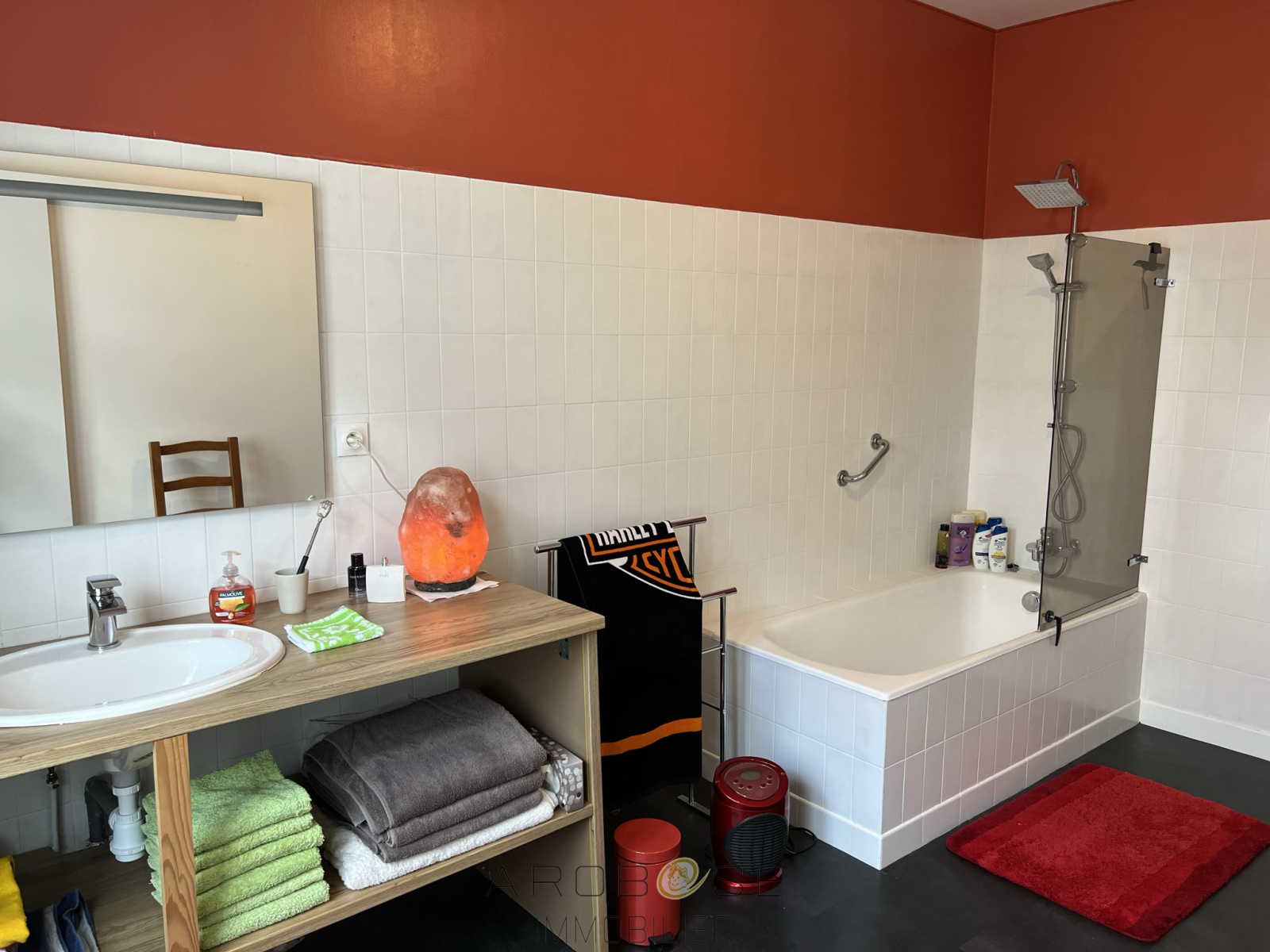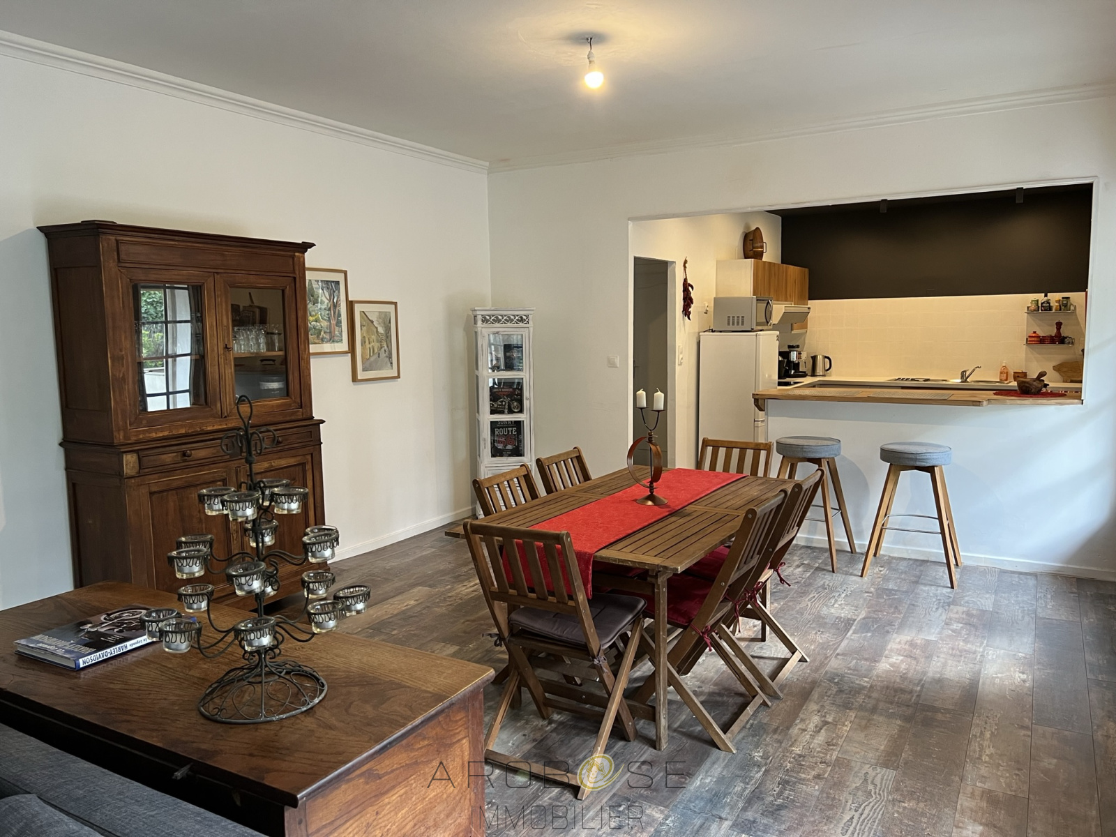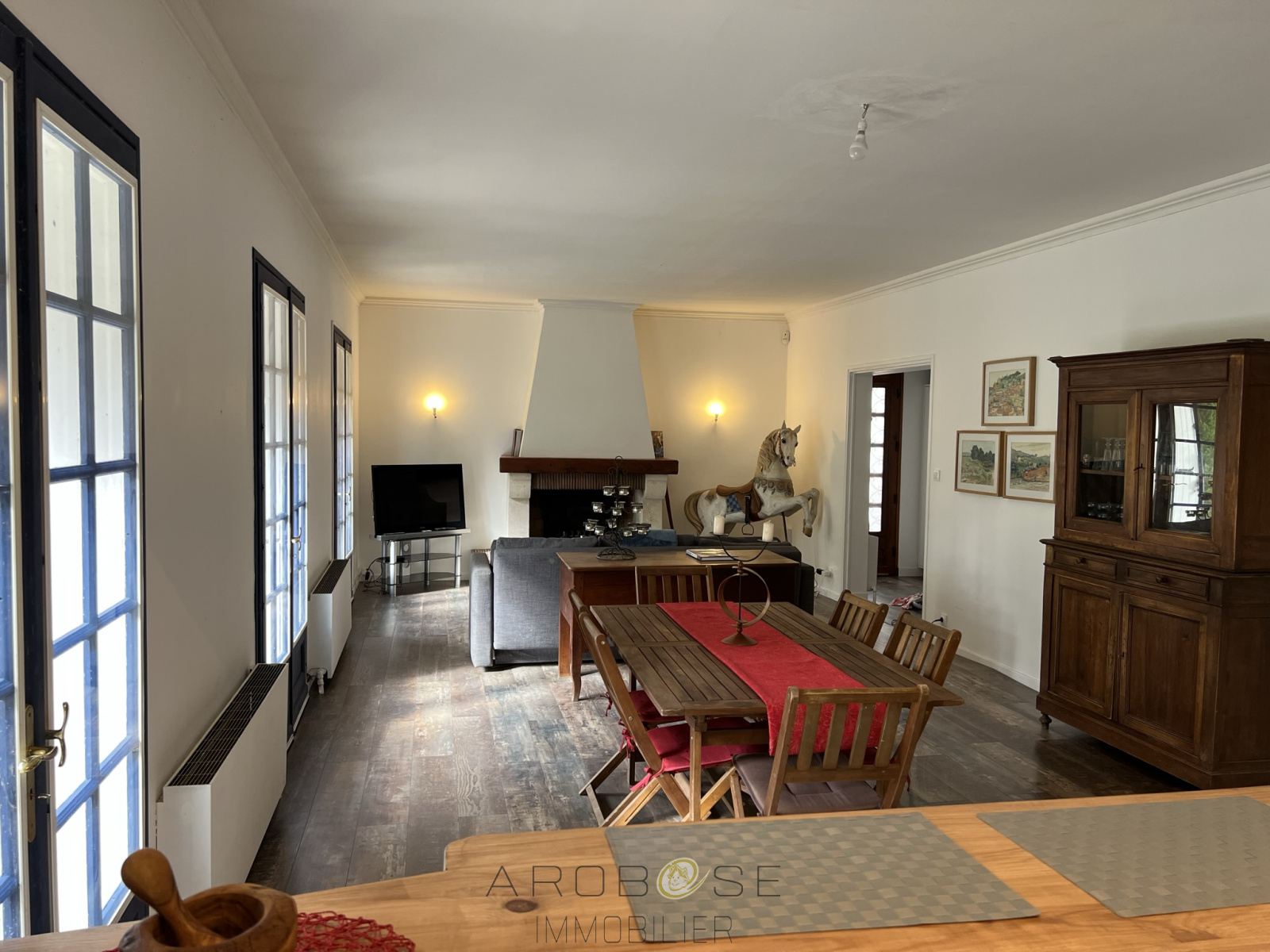 Exclusivité ; Aiguillon en centre ville : cette maison de plain pied en parfait état construite sur un terrain de 400 m2, vous propose une pièce de vie avec cheminée et cuisine aménagée et équipée de 48 m2, deux chambres, une salle de bains et un WC. Le garage est attenant. La terrasse semi-couverte ouvre sur le jardin clos .Pompe à chaleur, chauffeau thermodynamique,tout à l'égout, grenier aménageable et isolé !