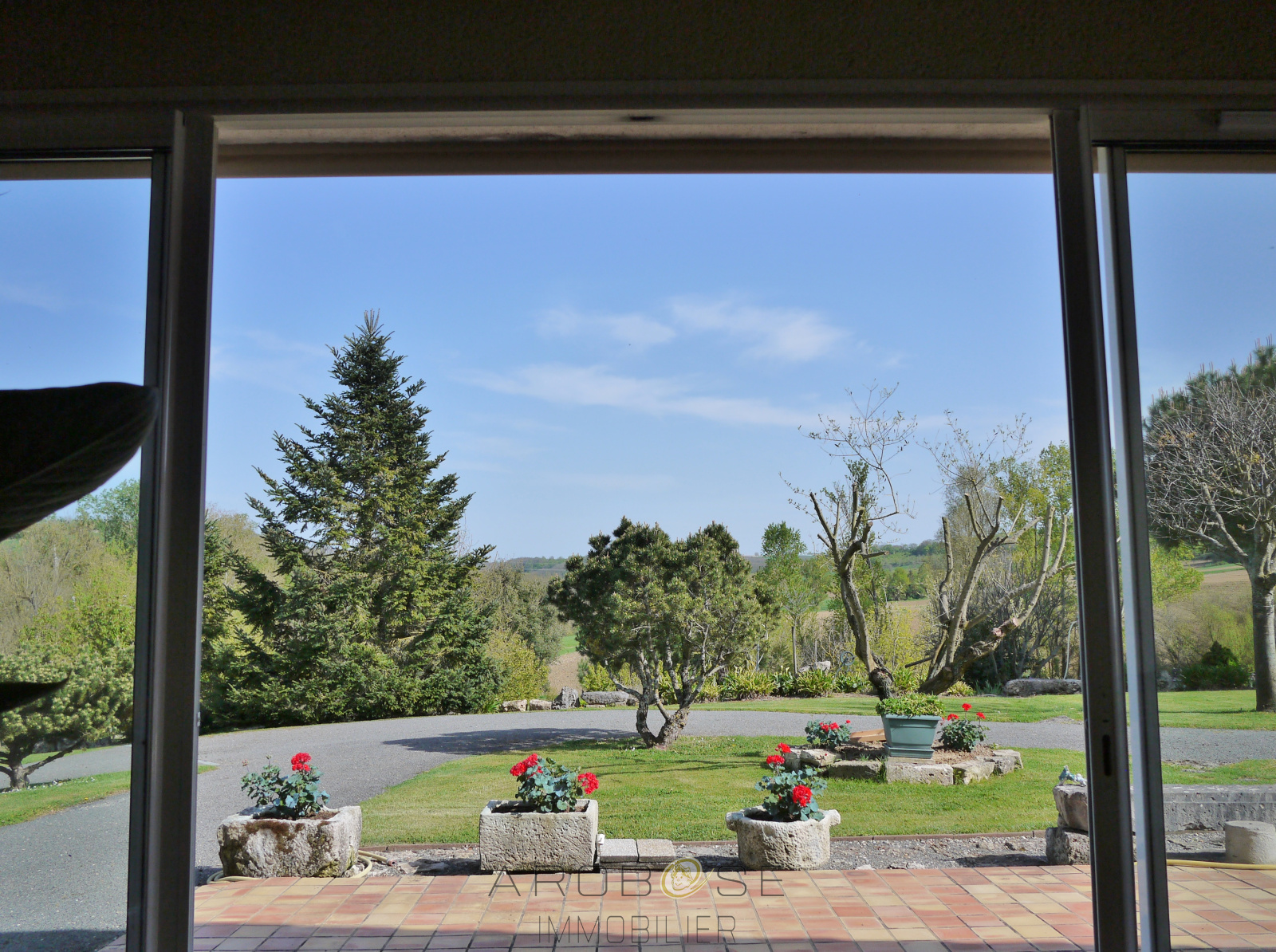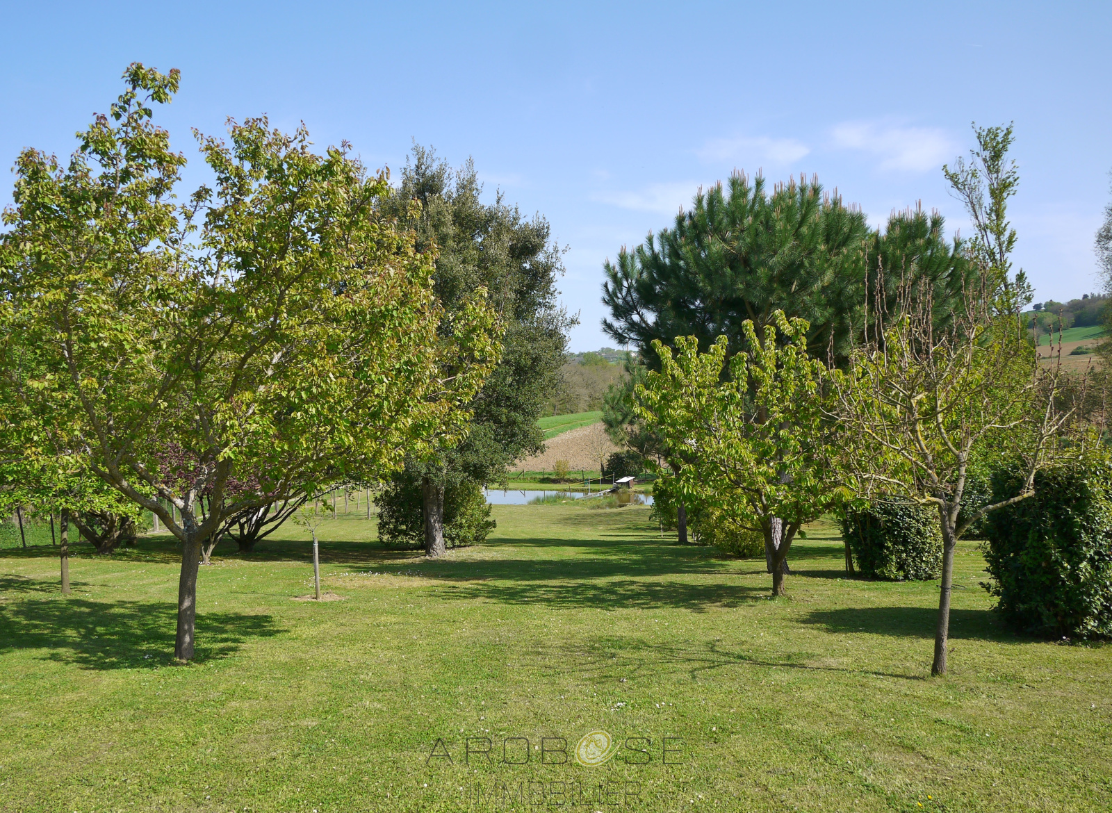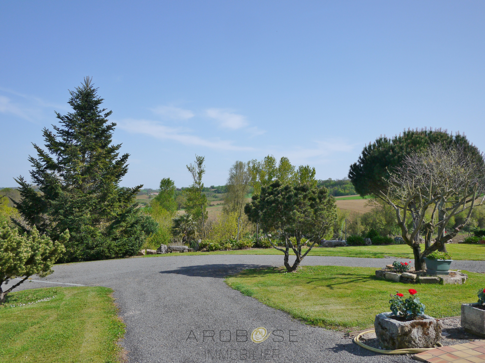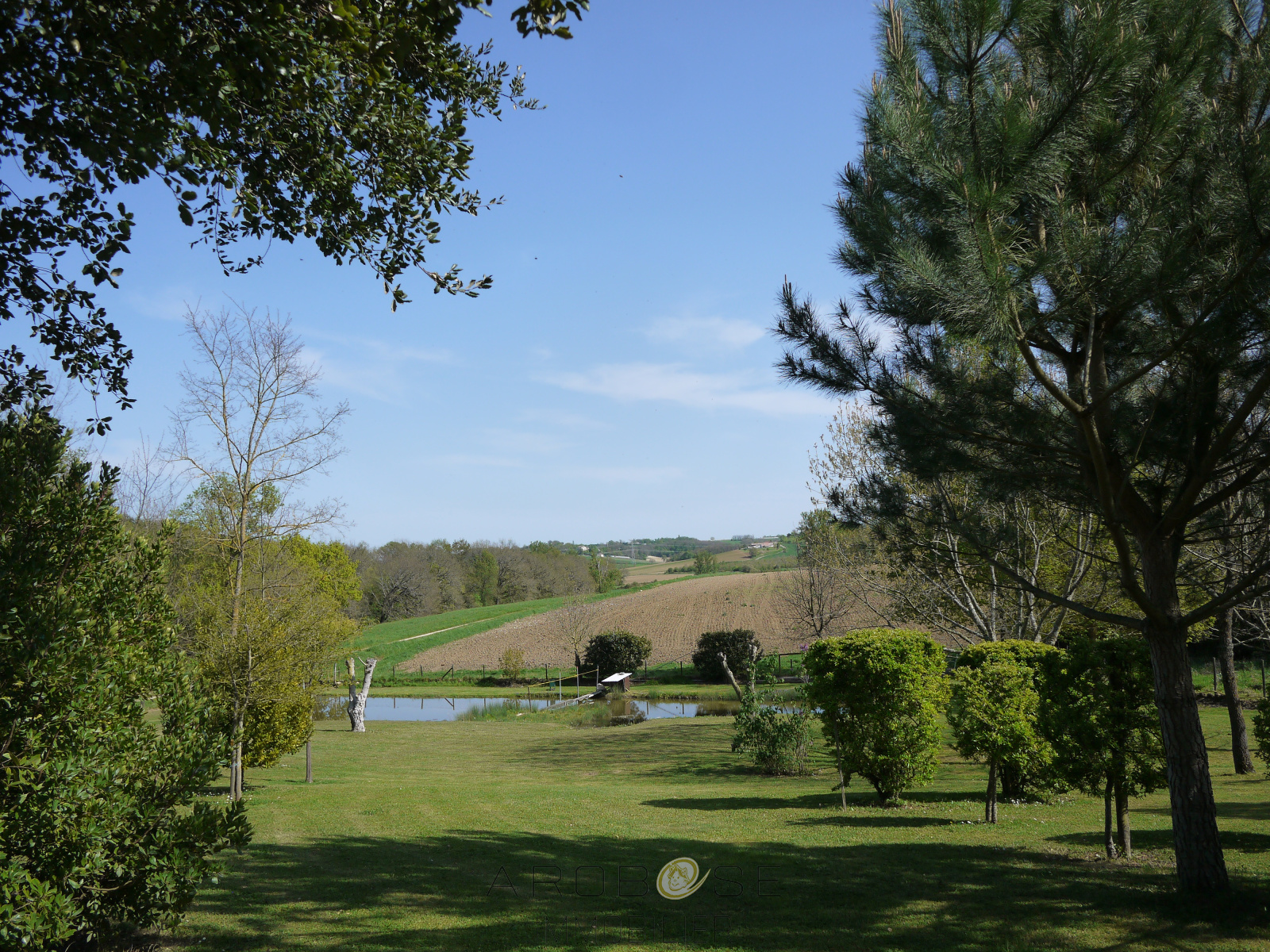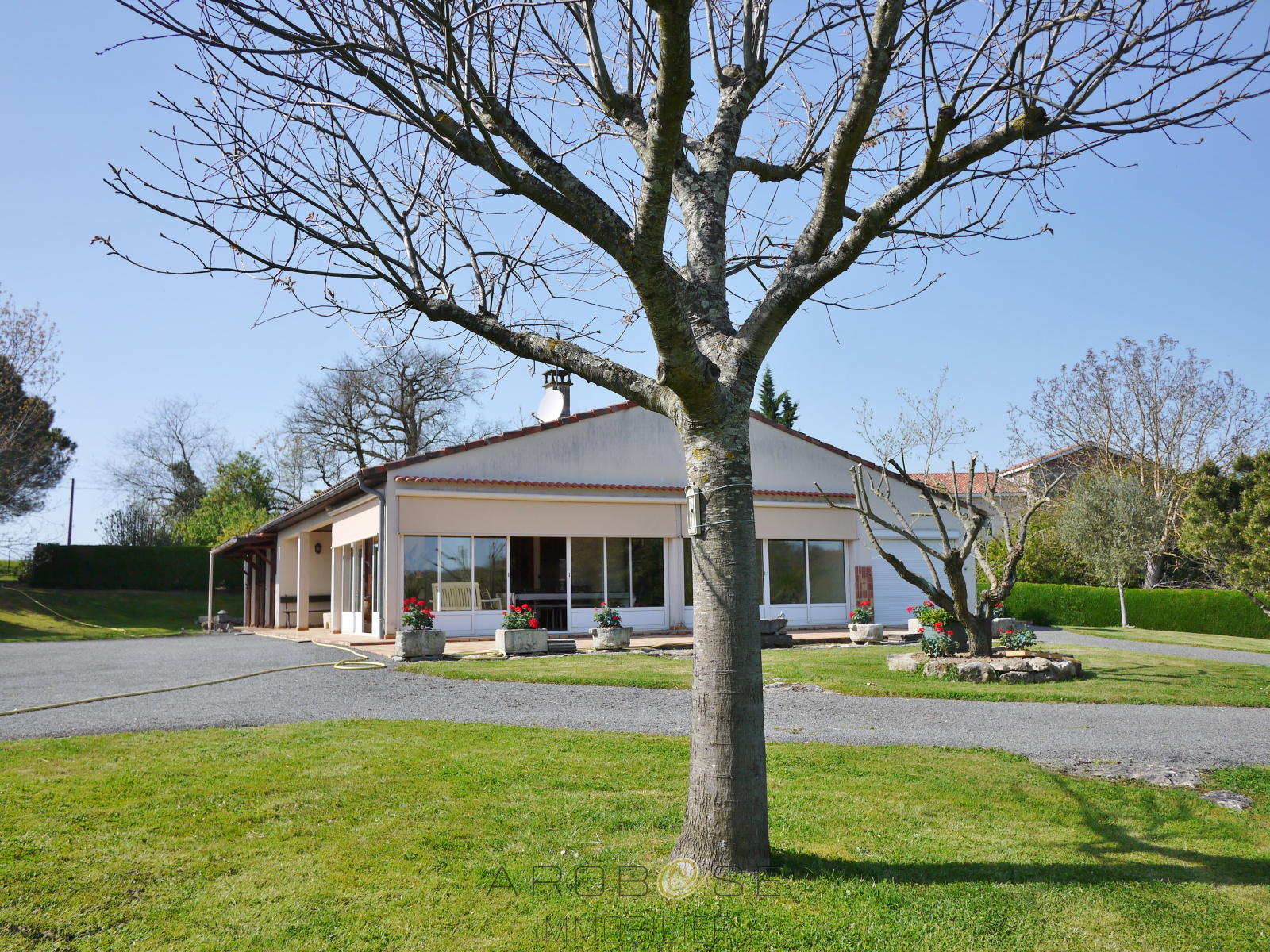 EXCLUSIVITE : à 30 kms au nord-ouest D'AGEN, à mi chemin entre Prayssas et Aiguillon, sur un terrain clos de 7000 m2, cette jolie villa de plain-pied bénéficie d'un bel environnement : vue dégagée sur la campagne et quiétude assurée!! Elle dispose d'une pièce de vie d'environ 50 m2 : séjour-salon avec cheminée-insert et cuisine ouverte équipée, le tout donnant sur une belle véranda dominant le jardin. L'espace nuit se compose de 4 chambres, d'une salle de bains avec douche. Egalement : hall d'entrée et toilettes avec lave-mains, buanderie ; double garage, abri camping-car et réserve, viennent en complément. Très confortable : climatisation reversible, insert, chauffage central , ... mais également lumineuse et parfaitement entretenue, vous pouvez vous installer sans soucis ! Côté prestations extérieures : portail électrique, potager, verger, retenue d'eau, .. ,Maison disponible fin Octobre ! Que vous soyez un adepte du jardinage, du farniente ... vous ne manquerez pas d'être séduits!!