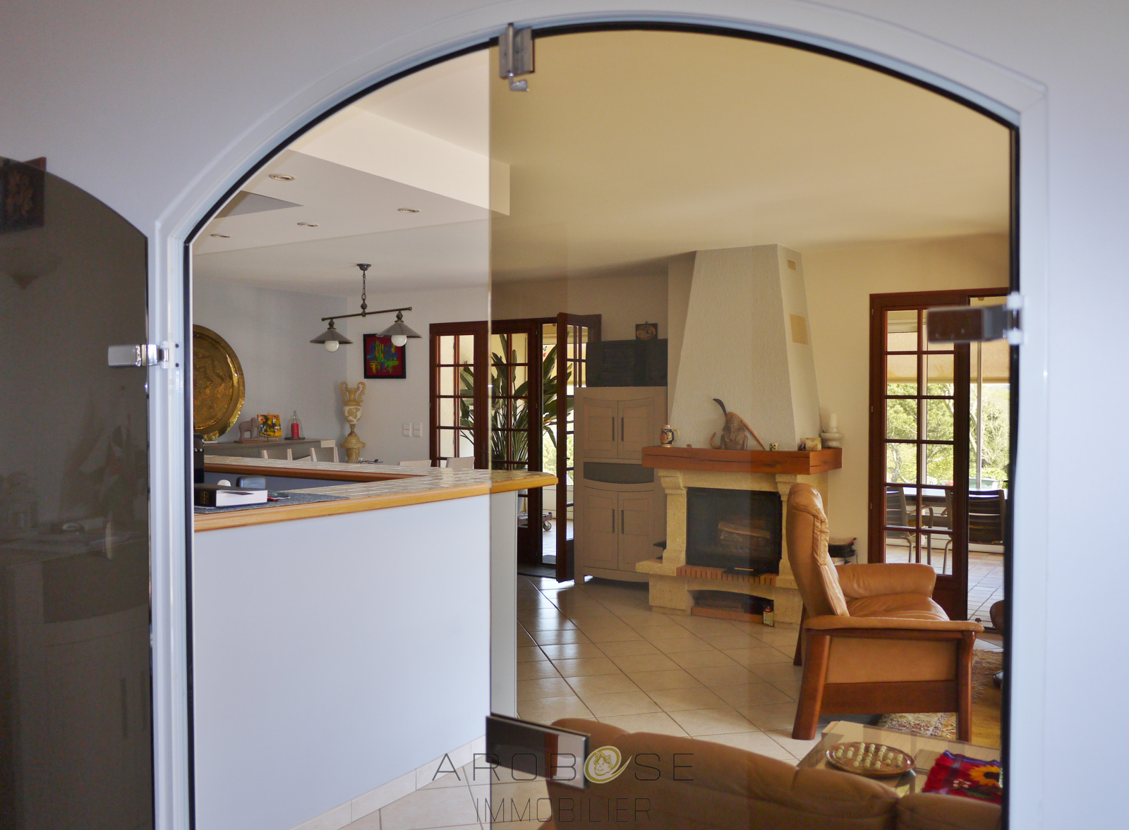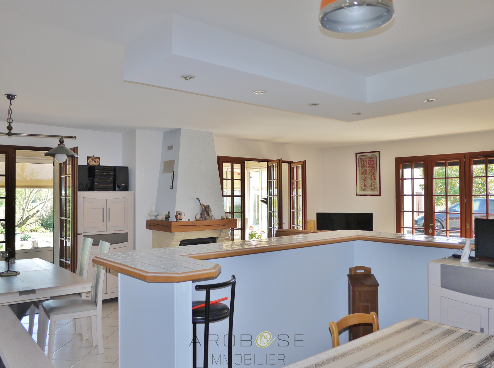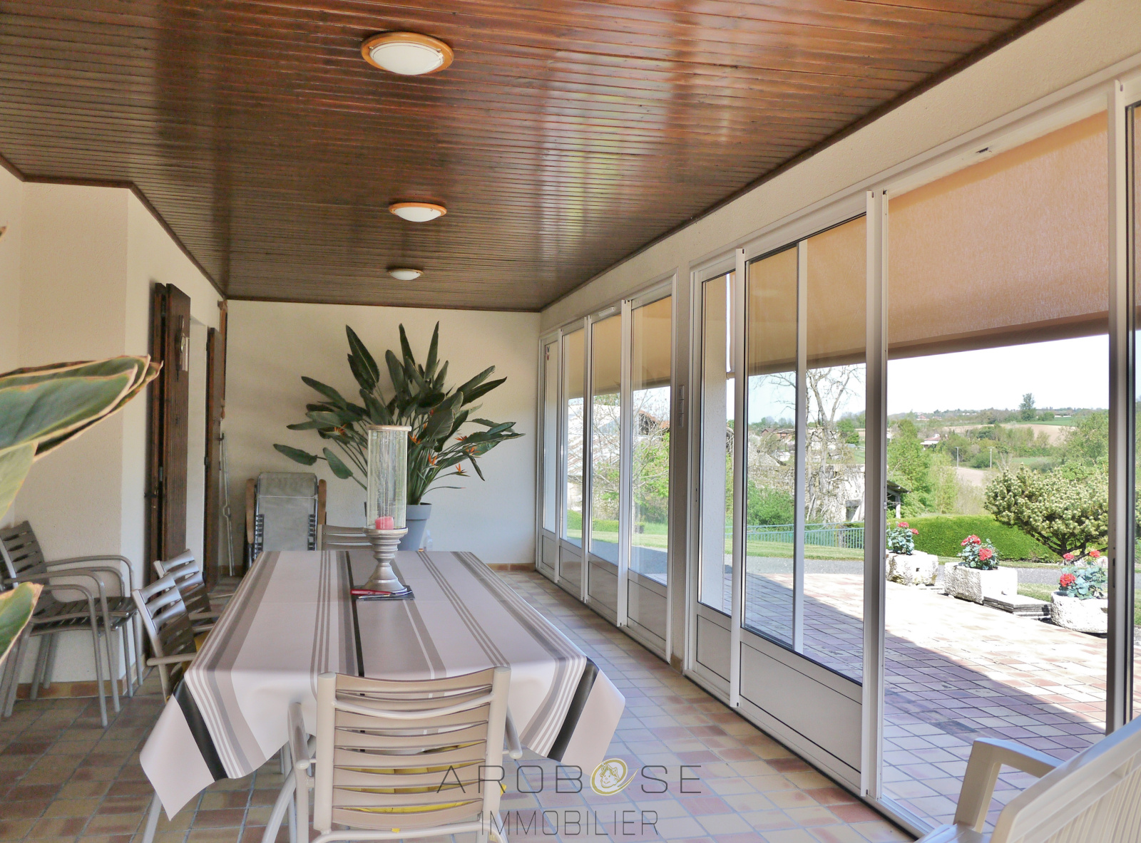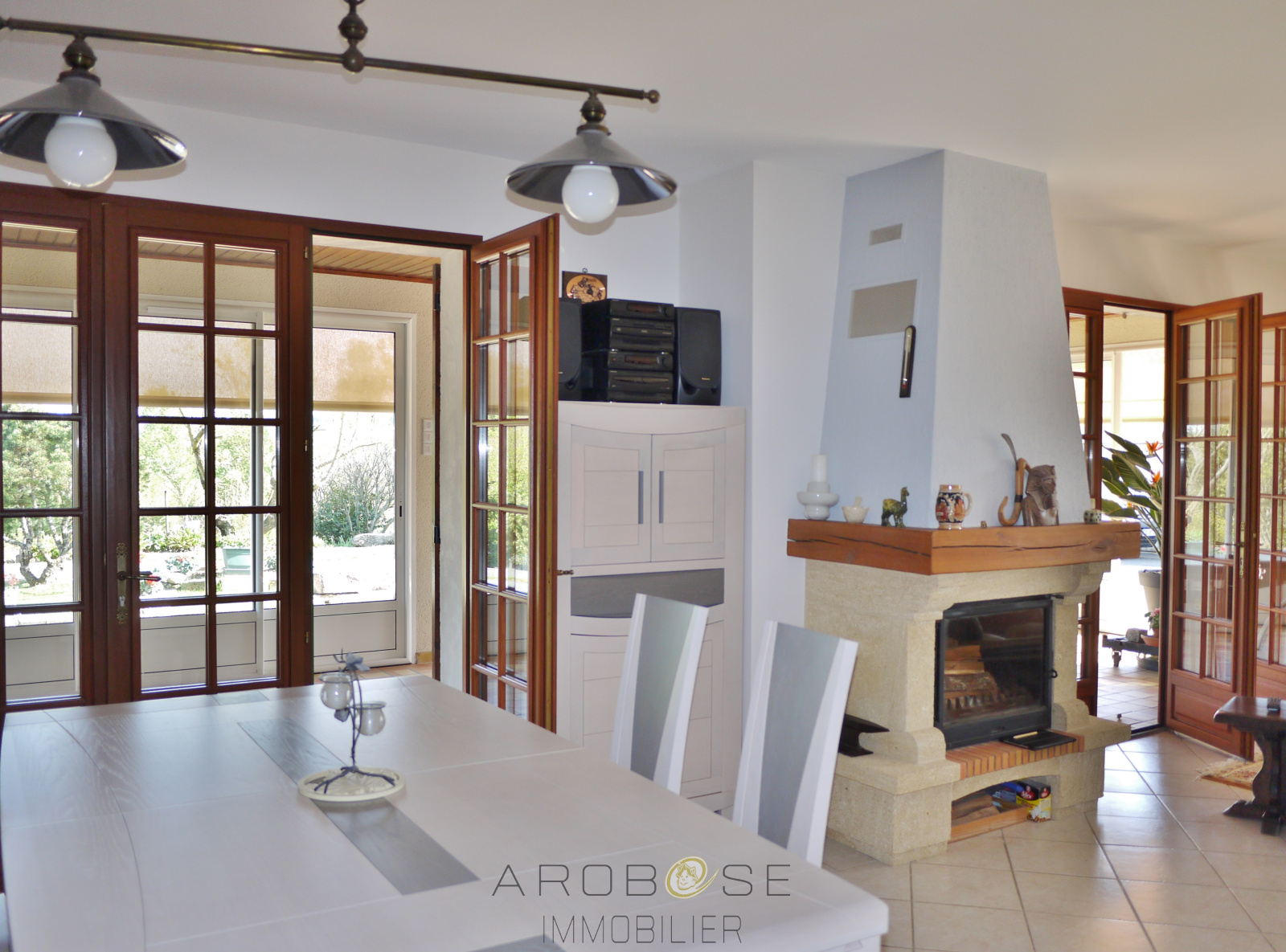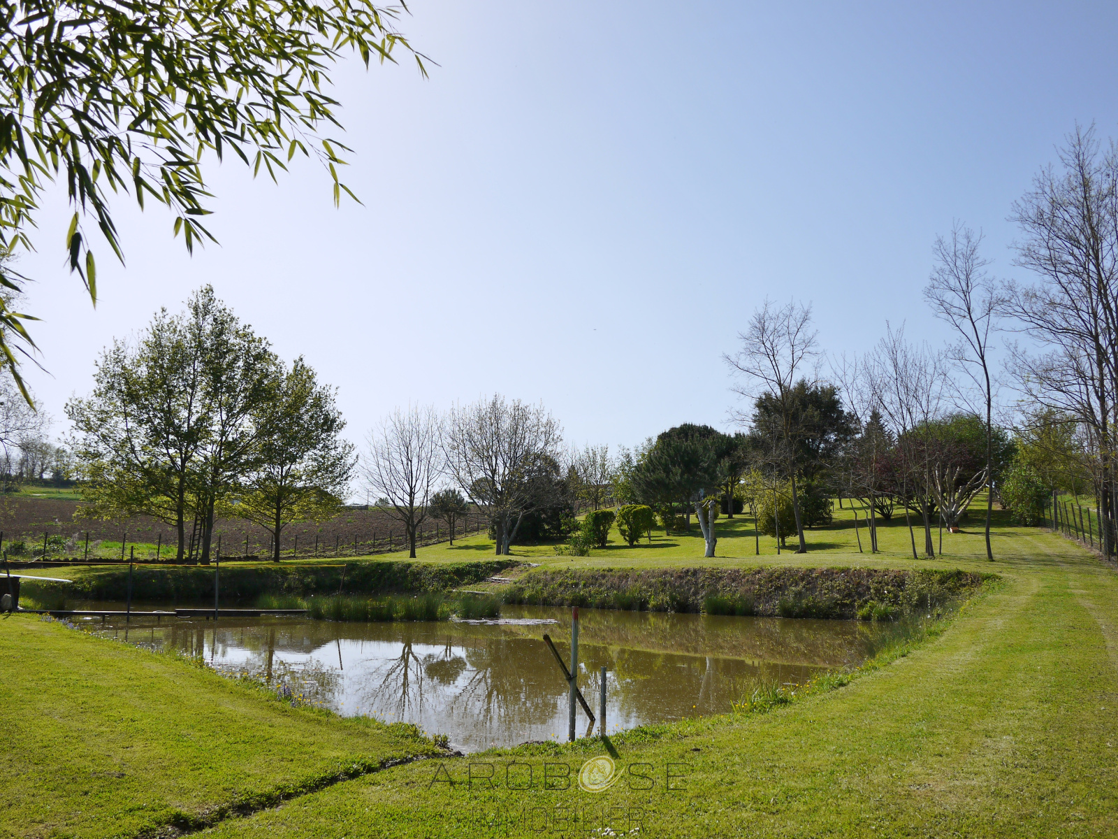EXCLUSIVITE : à 30 kms au nord-ouest D'AGEN, à mi chemin entre Prayssas et Aiguillon, sur un terrain clos de 7000 m2, cette jolie villa de plain-pied bénéficie d'un bel environnement : vue dégagée sur la campagne et quiétude assurée!! Elle dispose d'une pièce de vie d'environ 50 m2 : séjour-salon avec cheminée-insert et cuisine ouverte équipée, le tout donnant sur une belle véranda dominant le jardin. L'espace nuit se compose de 4 chambres, d'une salle de bains avec douche. Egalement : hall d'entrée et toilettes avec lave-mains, buanderie ; double garage, abri camping-car et réserve, viennent en complément. Très confortable : climatisation reversible, insert, chauffage central , ... mais également lumineuse et parfaitement entretenue, vous pouvez vous installer sans soucis ! Côté prestations extérieures : portail électrique, potager, verger, retenue d'eau, .. ,Maison disponible fin Octobre ! Que vous soyez un adepte du jardinage, du farniente ... vous ne manquerez pas d'être séduits!!
