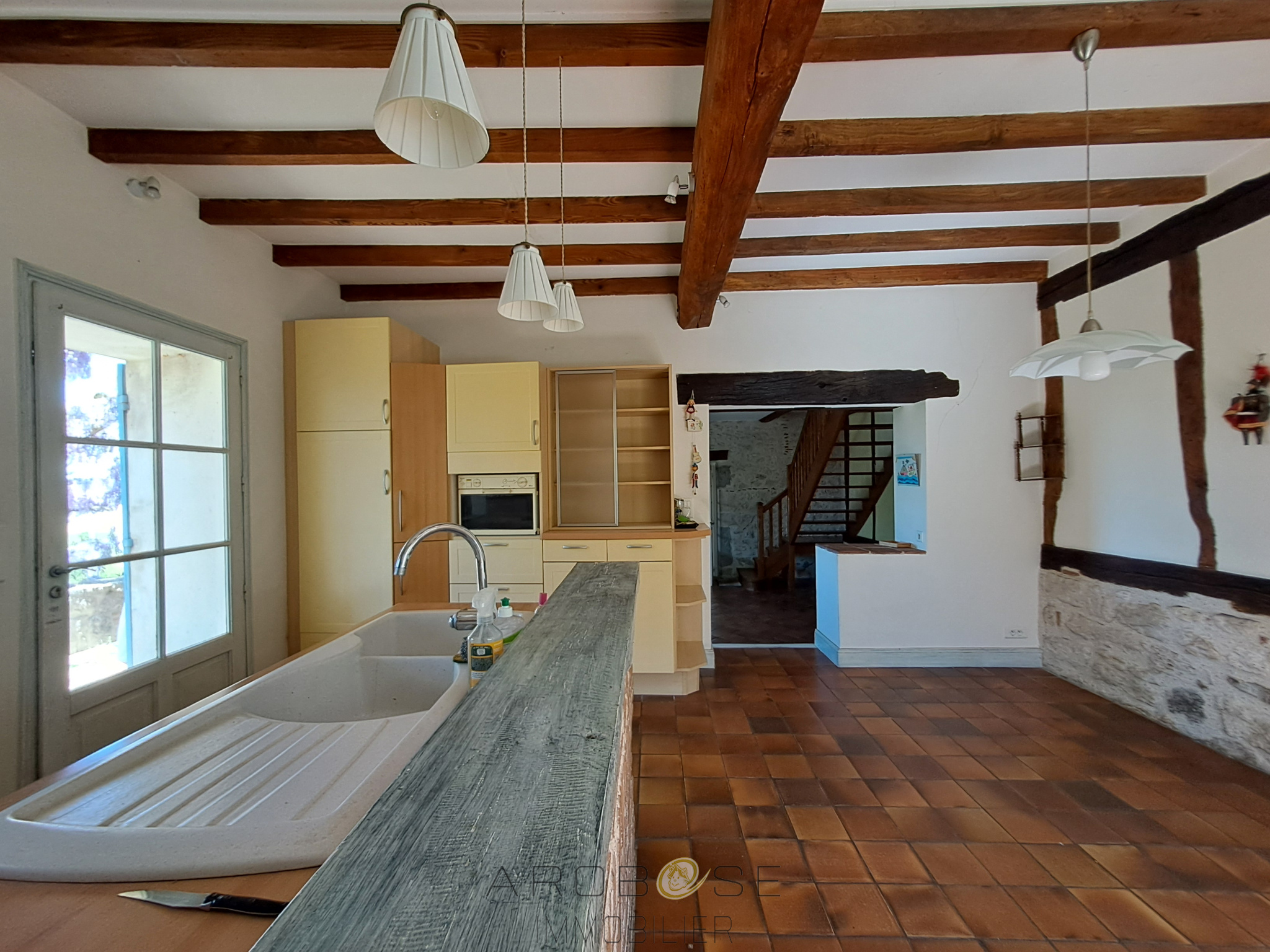 EXCLUSIVITE : Au cœur du Lot-et-Garonne, à proximité d’Aiguillon, entre charme de la pierre et confort moderne, cette maison spacieuse d’environ 280 m² habitables vous séduira par son environnement calme et verdoyant. Elle bénéficie d’un emplacement idéal, à seulement 5 minutes de la gare SNCF, des écoles et commerces, à 10 minutes de l’entrée de l’autoroute A62 via Damazan sur l’axe Bordeaux Toulouse, et à 30 minutes d’Agen. La maison se développe sur deux niveaux et offre de beaux volumes adaptés à une vie de famille. Au rez-de-chaussée, vous découvrirez une cuisine conviviale, une salle à manger ainsi qu’un salon chaleureux agrémenté d’une cheminée double foyer. Ce niveau comprend également deux chambres, une salle de bain équipée d’une baignoire et d’une douche, deux espaces de rangement, un WC indépendant ainsi qu’une pièce supplémentaire d’environ 40 m² pouvant être aménagée selon vos besoins en cellier, buanderie ou espace de stockage. Un garage complète cet espace. À l’étage, l’espace nuit se compose de trois chambres spacieuses dont une avec un coin WC et lavabo, d’une pièce pouvant faire office de salon ou de salle de jeux, d’un espace de rangement, d’une salle de bain, d’un WC indépendant, d’un atelier et d’un grenier. À l’extérieur, vous profiterez d’une agréable terrasse idéale pour les repas en plein air ainsi que d’un jardin arboré de plus de 450 m² offrant un cadre de vie paisible. Un pigeonnier aménagé en cabane pour les enfants ainsi qu’une cave viennent compléter ce bien.Ce bien est idéal pour une famille à la recherche de tranquillité, d’espace et de charme, tout en restant proche des commodités et des grands axes. Contact : Sylvie Boussenac, agissant en qualité d’agent commercial, immatriculé au RSAC d’AGEN sous le numéro 979410834, Tél. 06 20 96 98 41.
