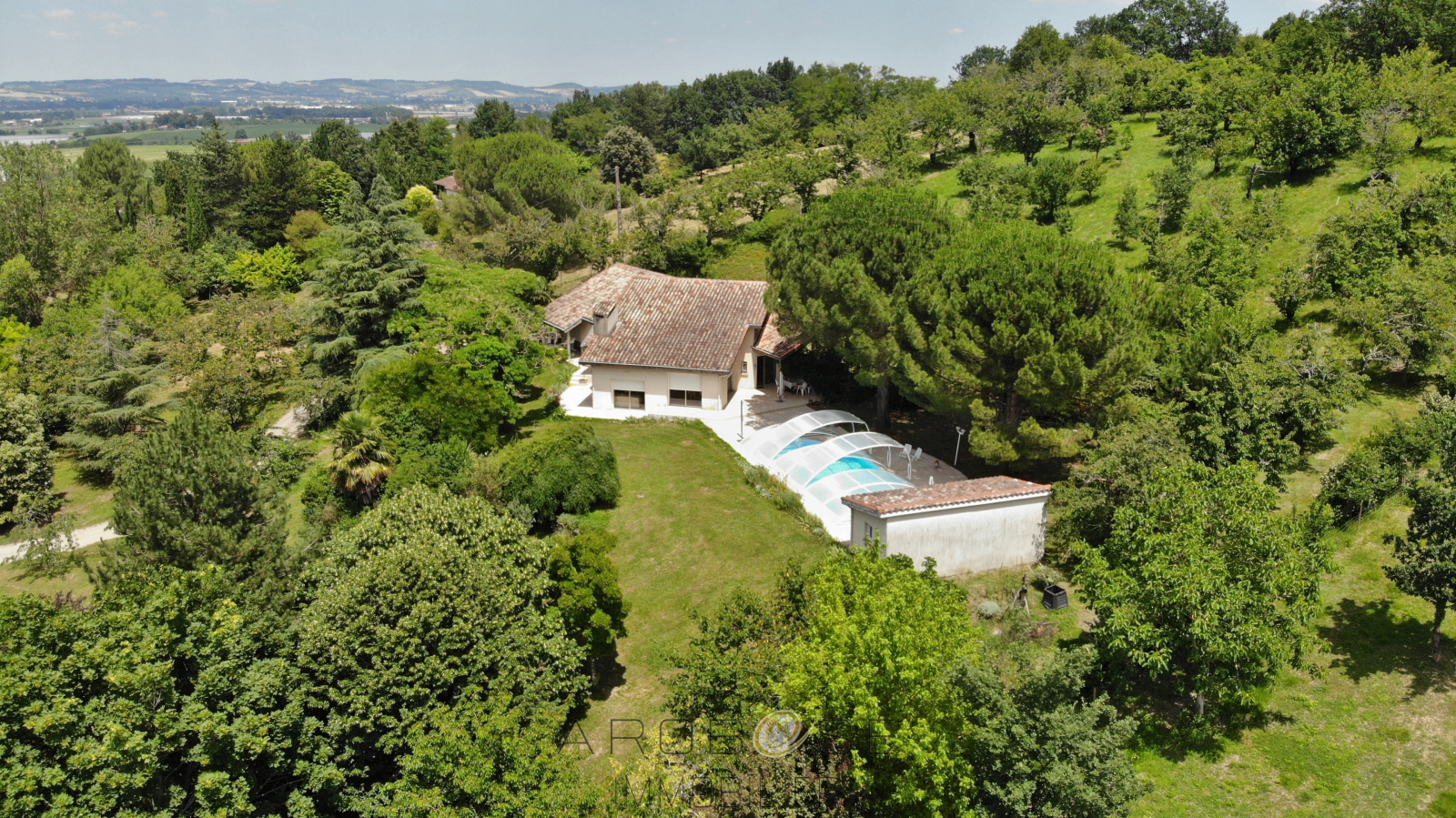 En coteaux, au cœur du département, nichée dans un endroit de rèves au coeur d'un parc clos de 9 000 m2 arboré, cette superbe villa d'architecte, baignée de lumière, bénéficie d'une vue panoramique. La piscine couverte avec son pool house vous permettra de profiter des beaux jours. Vous disposerez de 7 pièces principales, de 2 salles d'eau, d'une salle de bains, de 3 WC. Le sous-sol partiel semi-enterré est à usage de lingerie et de garage. Prestations de qualités!