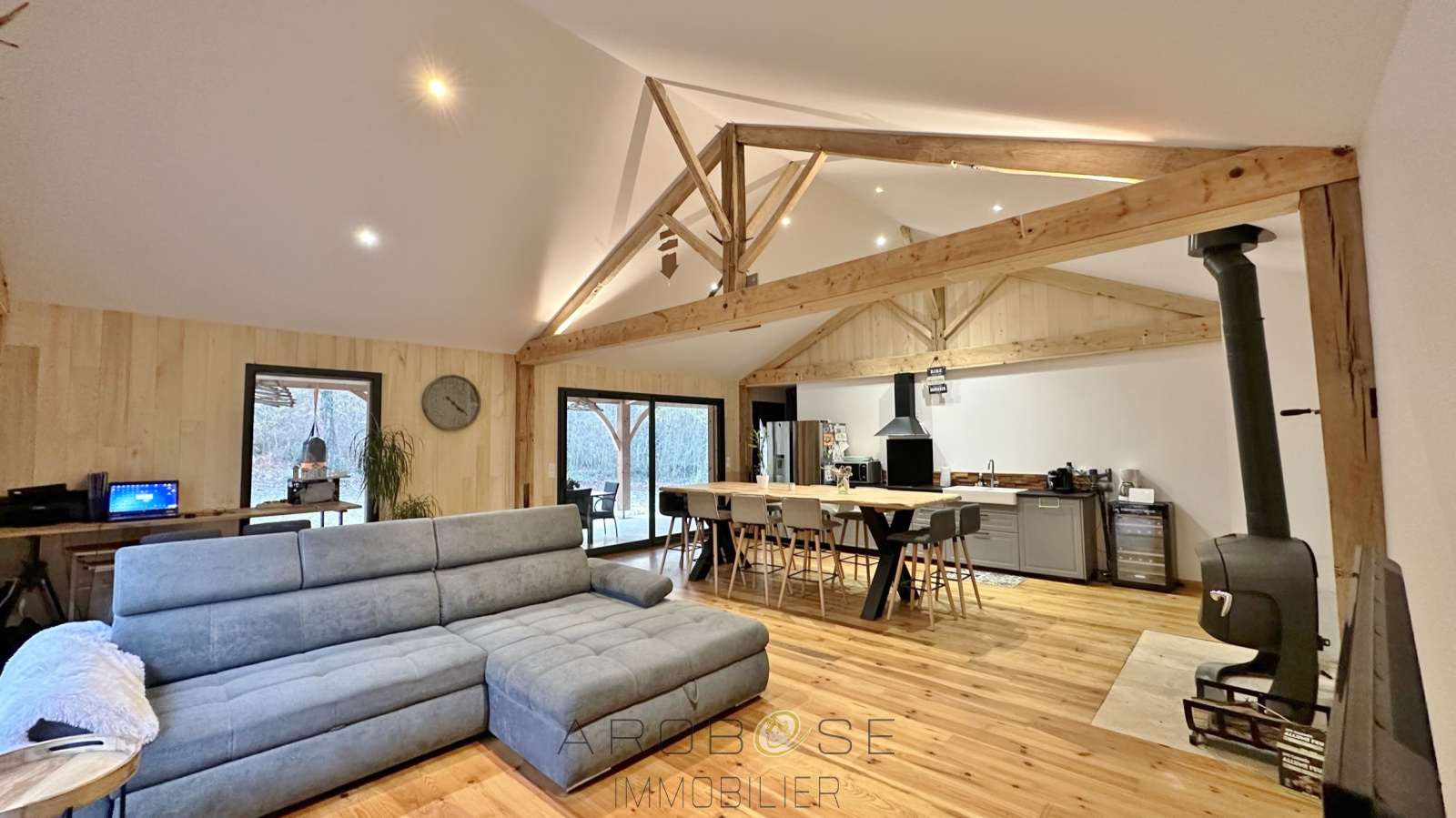 EXCLUSIVITE : RARE - à quelques minutes de l'accès A64 Bordeaux-Toulouse, dans un environnement unique au coeur des bois, sur un terrain de 3900 m2, superbe maison à ossature bois à l'interieur moderne et chaleureux ; de type F4, elle se compose d'une grande pièce de vie : séjour-salon-cuisine équipée, d'une arrière cuisine, de trois chambres, d'une salle d'eau avec douche à l'italienne, d'un WC. Poele à bois, terrasse couverte , abris voiture... A visiter rapidement si vous êtes un amoureux de la nature et un amateur de calme !!