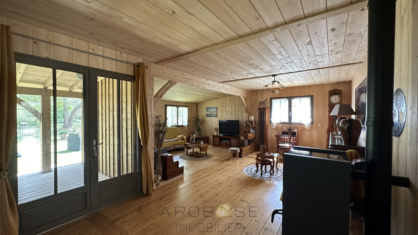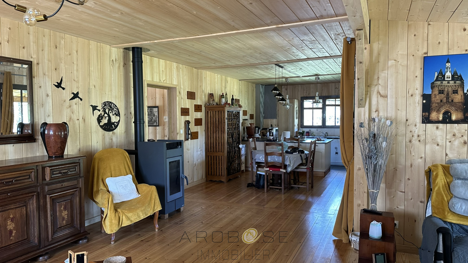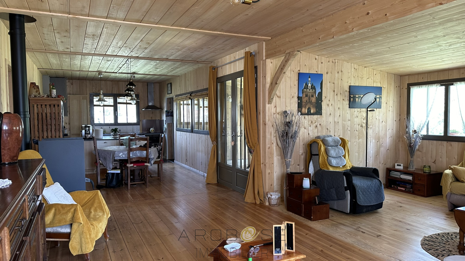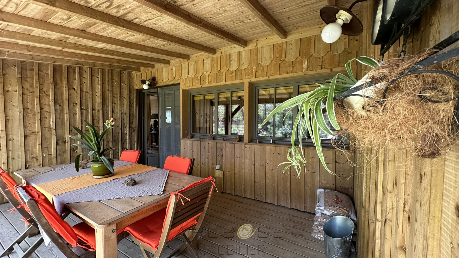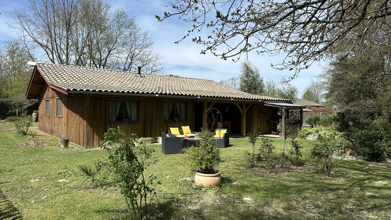 EXCLUSIF : Bâtie sur un terrain d'environ 2500 m2, cette maison en ossature bois de plain-pied vous propose environ 117 m2 habitables. Vous serez séduit par les beaux volumes : une piéce de vie de 55 m2 avec poele à granulés, ouvre sur une terrasse couverte face à une nature luxuriante et arborée ..Deux grandes chambres avec placard ,salle d'eau .et WC complétent ce petit bijoux .Pour amoureux de la nature .