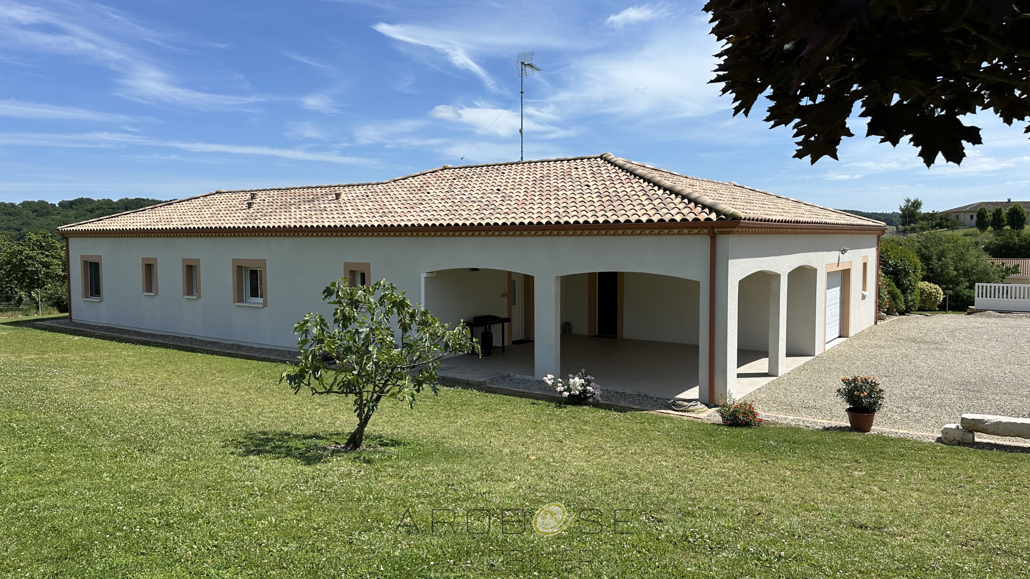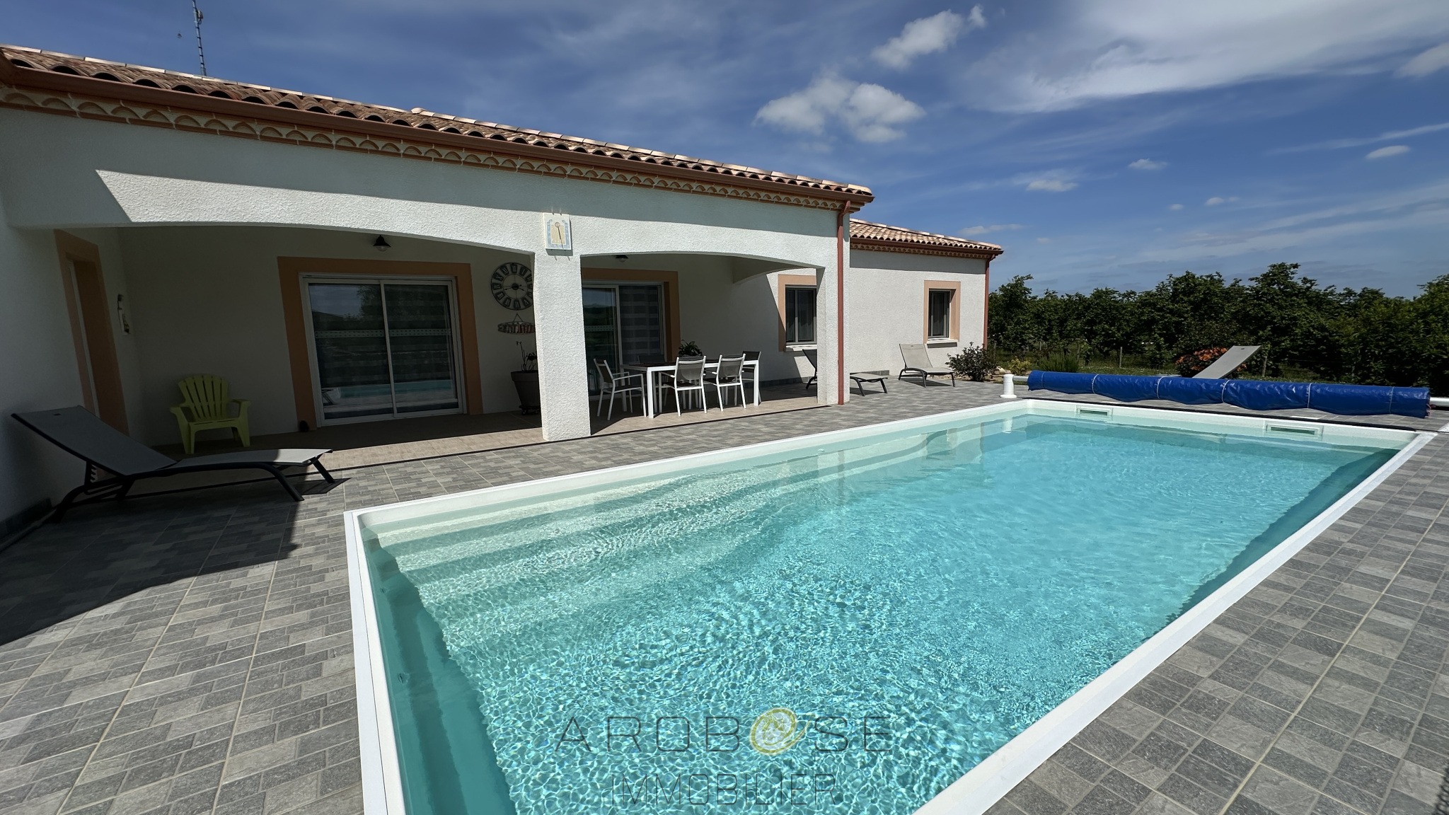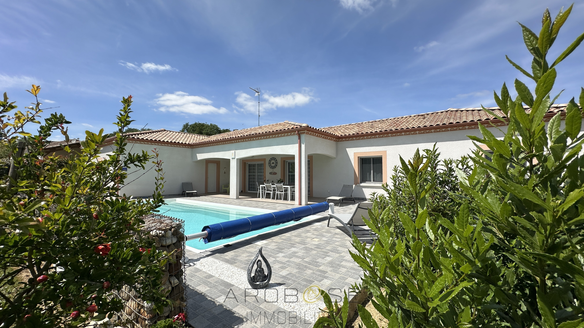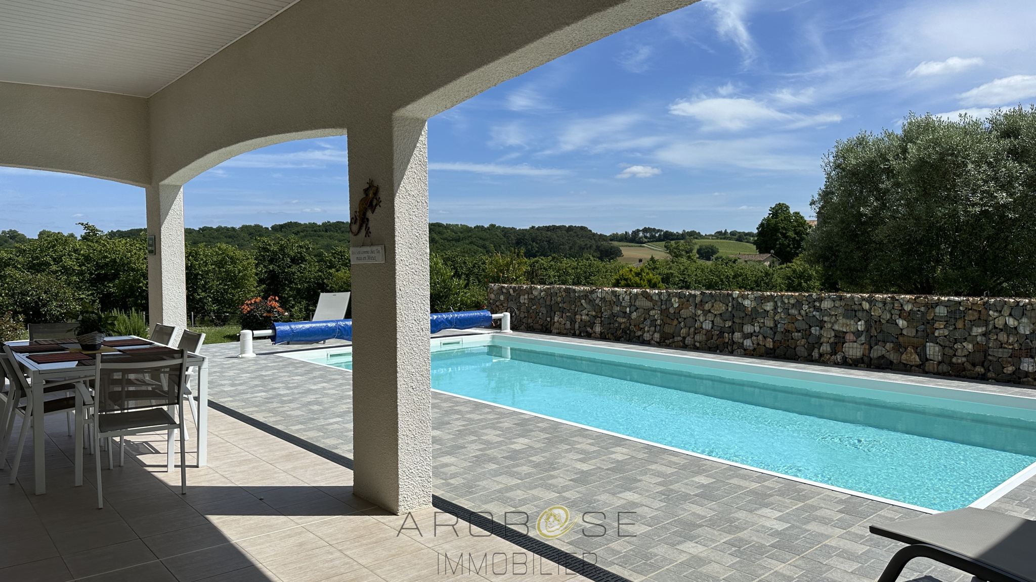 EXCLUSIVITE : Dans un secteur privilégié, à quelques minutes de Damazan, entre Bordeaux et Toulouse, à 30 mns d'AGEN et à 10 mns de Casteljaloux, cette villa contemporaine de 2014 de plain pied construite sur un terrain clos de 2200 m2 vous propose une pièce de vie d'environ 50 m2 avec cuisine ouverte équipée qui ouvre sur une belle terrasse couverte avec accés à la piscine, 3 chambres avec placards, salle de bains avec douche à l'italienne, cellier, grand garage de 56 m2 et abri véhicule de 43 m2.... Des prestations de qualités : construction semi/traditionnelle,belle hauteur sous plafond, portail électrique, climatisation, piscine ... Aussi fonctionnelle, confortable que lumineuse, que ce soit pour une habitation principale ou secondaire, vous ne pourrez qu'être séduit !! .. prennez rendez-vous trés rapidement !!