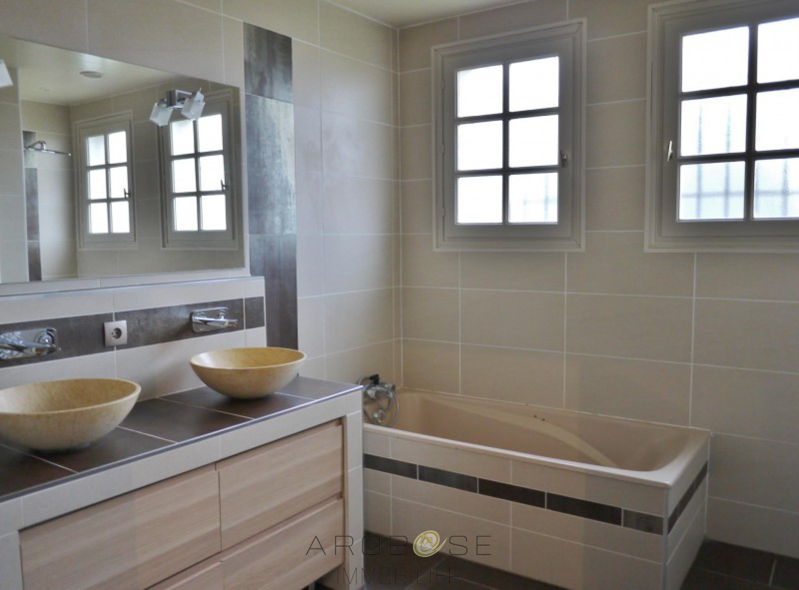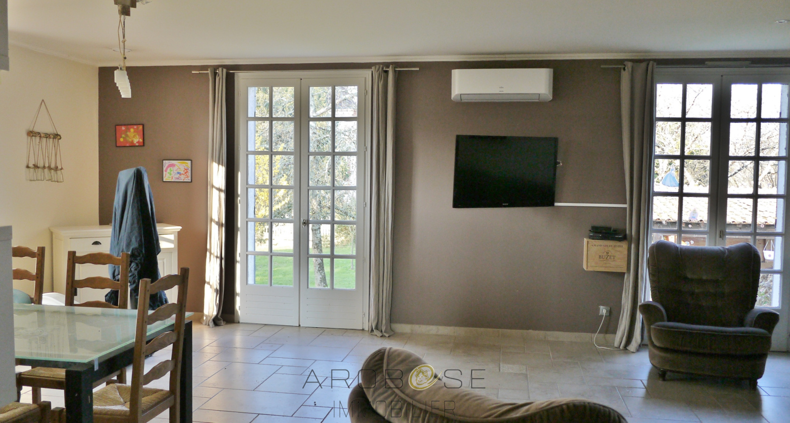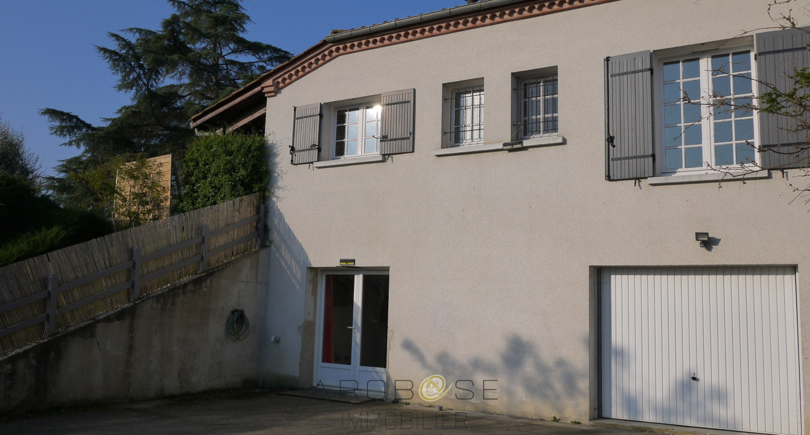 EXCLUSIVITE : Parfaitement située au centre du village, à 5 mns de l'accès autoroute et à pieds des commerces, cette superbe maison de 166 m 2 habitables vous propose au 1er étage : une belle salle de séjour avec cheminée et insert, une cuisine aménagée et équipée ouvrant sur une charmante terrasse, deux chambres, un dressing, une salle de bains avec douche à l'italienne et un WC et en rez de jardin : une salle de séjour-cuisine, une chambre, une salle d'eau avec WC ; cave, garage. Le jardin de 2100 m2 est arboré et clos! Electricité aux normes, Pompe à chaleur, ... Vous profiterez également d'un espace "été " couvert et d'une pisicine hors sol.. Le rez de chaussée peut permettre de recevoir des amis, des parents, ou devenir un espace pour des ados .... A decouvrir trés rapidement, il n'y aura qu'un seul élu !!